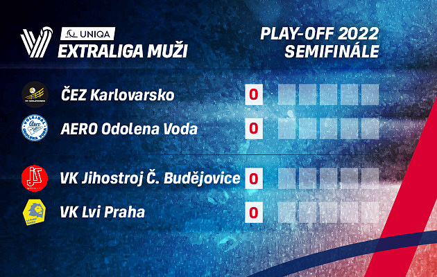 UNIQA volejbalová extraliga mužů 2021/22 pomalu směřuje ke svému vrcholu. Máme za sebou čtvrtfinálové série a v pondělí 11. dubna 2022 začínají obě semifinálové série. Do Českých Budějovic přijedou pražští Lvi a Karlovarsko bude hostit Odolenu Vodu.