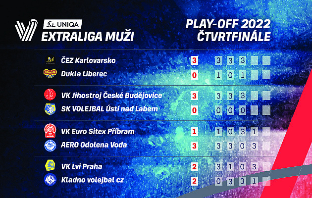 Až do pátého utkání dospěla čtvrtfinálová série play-off mezi pražskými Lvy a kladenskými Orly. Zatímco v prvních dvou zápasech vyhrál vždy domácí tým, za vyrovnaného stavu se Kladnu podařilo ukořistit výhru v Praze. Zprvu se sice hrál vyrovnaný volejbal, pak však přišel doslova zkrat domácích Lvů a toho Kladno dokázalo využít a připravilo se pro domácí čtvrté utkání postupový mečbol. Ani v domácím prostředí nezačali Orli špatně, pak však vyšlo Pražanům střídání. Do hry přišel univerzál Mihajlović a smečař Smith a zejména prvně jmenovaný činil kladenskému týmu velké problémy. A když Kladnu postupně „odešla“ jejich největší zbraň – servis, Lvi už měli do konce utkání mírně navrch a odvrátili hrozbu vyřazení. O postupujícím do semifinále tak rozhodne až pátý vzájemný duel.