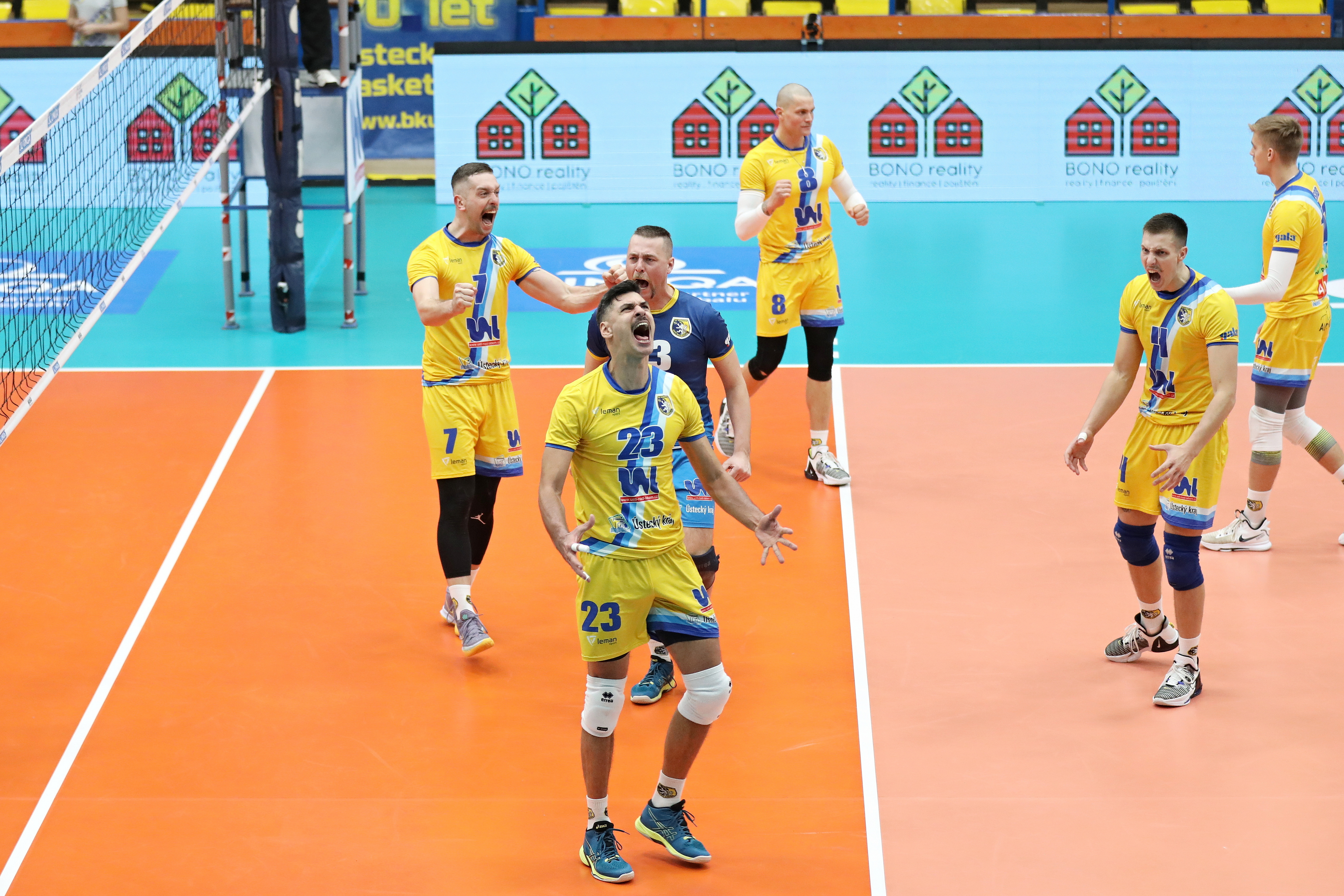 Hosté: Marek Mečiar, Ian McLain, Tomáš Prokůpek, Jakub Motyčka, Tomáš Kristian, Adam Provazník, libero Dominik Jelen. Střídali: Ondřej Muroň, Marek Perry, Matěj Koloušek, Tomáš Mišek, Jiří Benda
