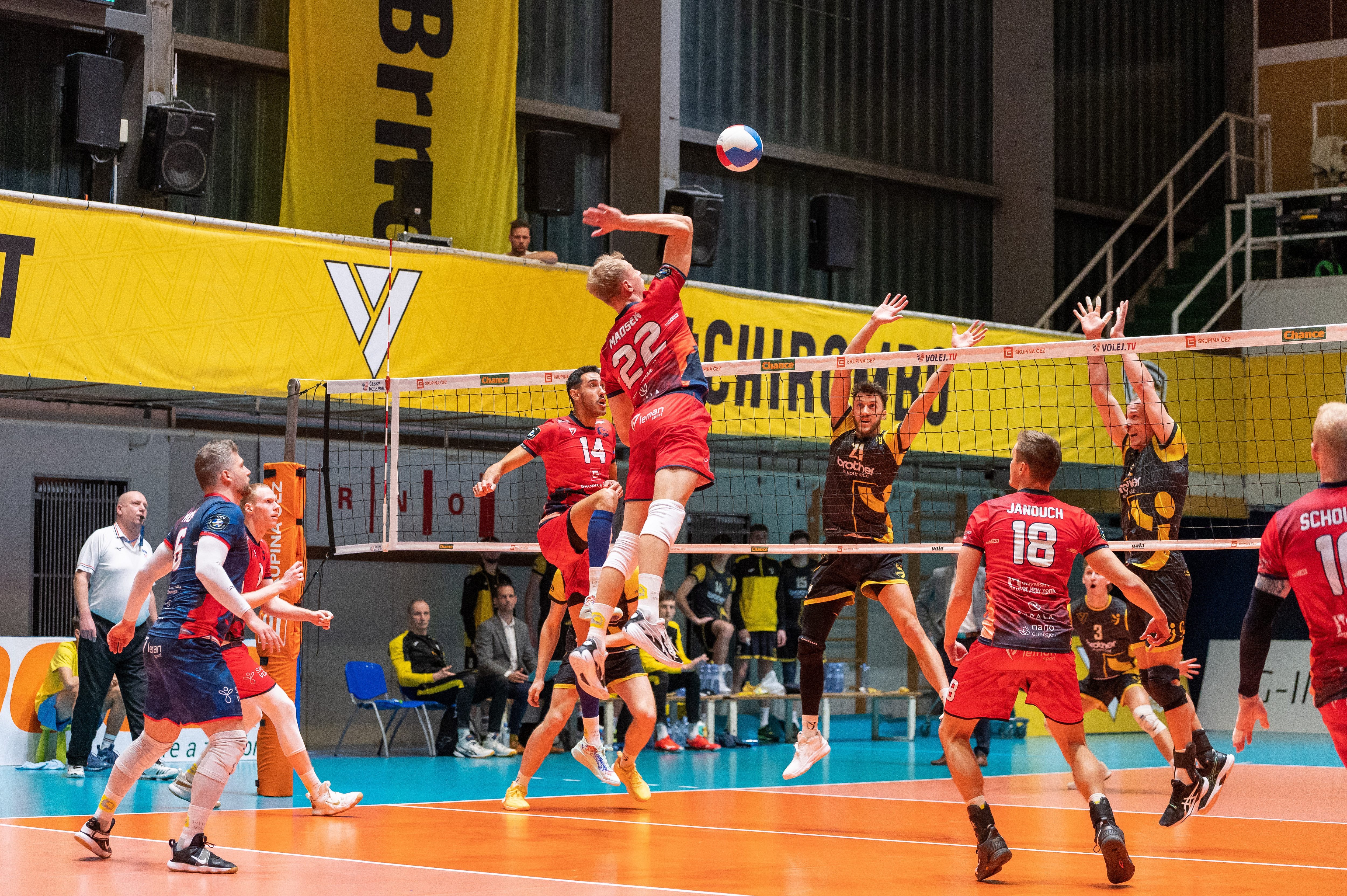 Domácí: Kock, Keemink, Ihnát, Carmody, Rodriguez Dosal, Pastrňák, libero Pfeffer. Střídali: Marelić, Baláž, Kasan