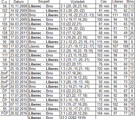 Finálová série mužské UNIQA extraligy se rozehraje již tuto neděli a my se před jejím startem podíváme prostřednictvím statistik trochu do minulost. Zajímavý je například pohled na vzájemné zápasy obou finálových soupeřů - liberecké Dukly a brněnského Volejbalu. Severočeši totiž již celkem 14x v řadě se svým letošním finálovým soupeřem neprohráli, přičemž vždy Brnu dovolili maximálně zisk jednoho setu! Jednoznačným favoritem finálové série je Liberec i letos.