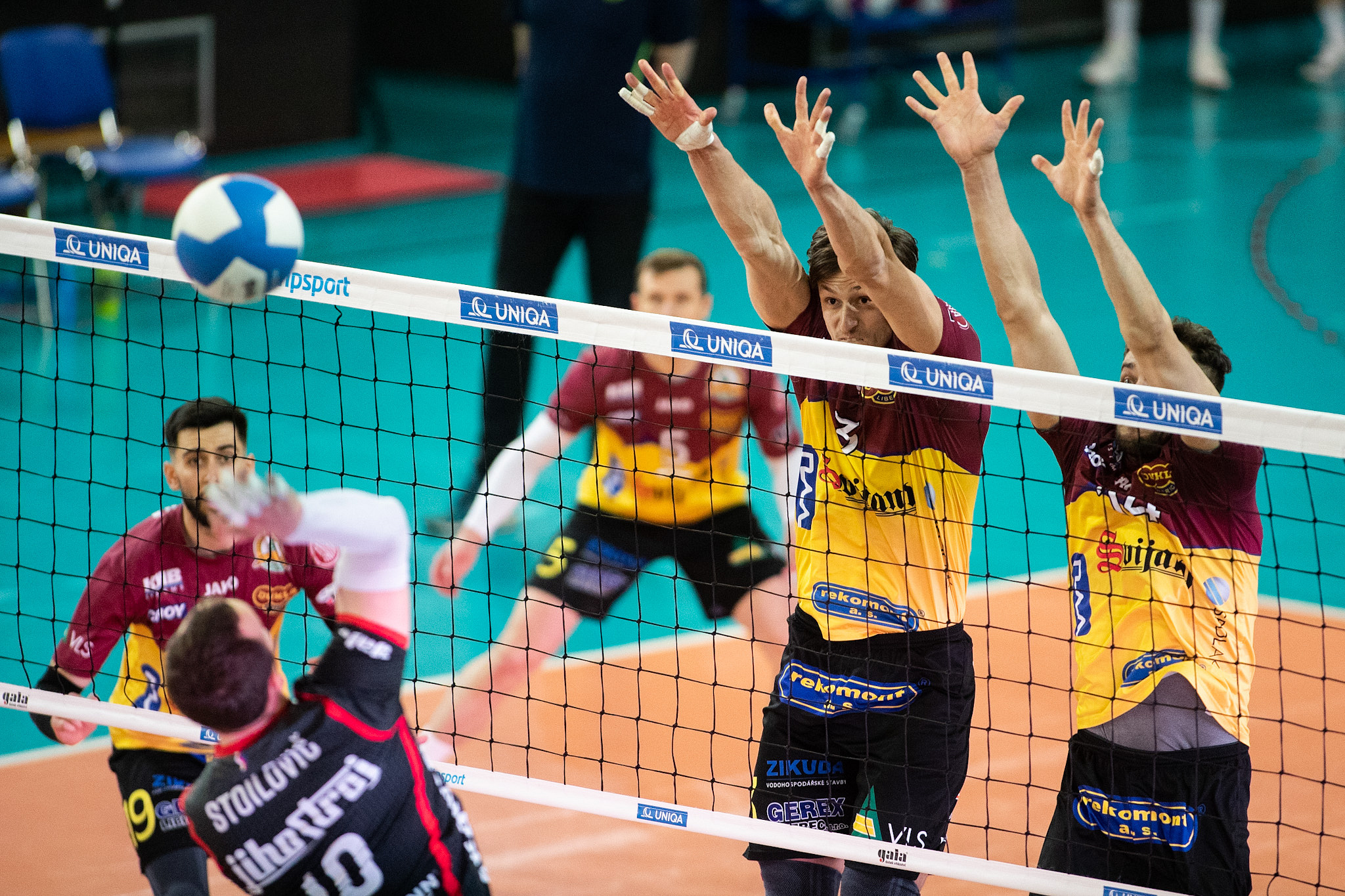 Po včerejším nádherném pětisetovém prvním semifinále v Karlových Varech, kde Lvi přehráli domácí Karlovarsko 17:15 v tiebreaku, pokračovala v úterý UNIQA volejbalová extraliga mužů 2022/23 semifinálovou sérií v Liberci. Pod Ještědem v zaplněné hale Dukly se představil Jihostroj České Budějovice. VK Dukla Liberec má poslední dobou velmi špatnou bilanci s Jihostrojem. Vypadá to až neuvěřitelně, ale osmkrát za sebou s Jihostrojem podlehla. Naposledy se z vítězství radovala 27. 11. 2020. V sezóně 2018/19 se oba soupeři utkali ve finále extraligy a opět byl úspěšnější Jihostroj, který zvítězil 3:2 na zápasy. Obě družstva vždy zvítězila na domácí palubovce. Rok předtím Dukla přehrála Jihostroj 2:1 na utkání v boji o třetí místo. V sezóně 2014/15 a 2015/16 se Dukla 2x radovala z titulu, dokonce v dubnu 2015 zvítězila 4:1 na utkání právě se Jihostrojem. Jihostroj naopak 2x porazil Duklu ve finále v letech 2012 a 2014. Obě družstva jsou každým rokem žhavým kandidátem na titul a letos postoupí dále jen jeden, zda to bude Dukla nebo Jihostroj, na to si musíme počkat. Kdo 3x zvítězí, bude ve finále. Jihostroj dnes nastoupil v kompletní sestavě, to trenér Dukly Martin Demar postrádal blokaře Kruno Nikačeviće. První set odehrála Dukla ve velkém stylu a zaslouženě se ujala vedení v prvním semifinále. Druhý set se obě družstva přetahovala o každý bod až do úplné koncovky, kde zodpovědnost na sebe vzal Filip Gavenda, který koncovku zvládl na výbornou. Ve třetím setu Jihostroj dlouho vedl, ale v koncovce iniciativu převzala Dukla a zaslouženě zvítězila bez ztráty setu a ujala se vedení 1:0 na zápasy.