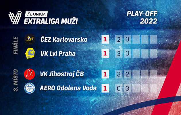 Po nervy drásajícím prvním zápase v Karlových Varech zvládli Západočeši odvetu v Praze s bravurou a bez ztráty setu vyrovnali finálovou sérii UNIQA volejbalové extraligy mužů 2021/22 na 1:1. Ani v sérii o bronz se Odolena Voda nevzdala a oplatila Jihostroji porážku z prvního zápasu. O tom, kdo nakonec získá bronzovou medaili, rozhodne až třetí utkání v českobudějovické hale.