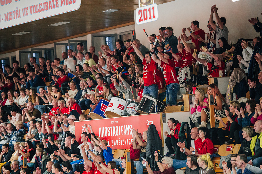 Na druhý zápas semifinále play-off UNIQA volejbalové extraligy mužů 2022/23 si našlo cestu více než dvě tisícovky fanoušků. Jihostroj v sérii hrané na tři vítězná utkání prohrával 0:1 a nutně potřeboval pomoc sportovních příznivců. A dočkal se. „Byla to naprosto fantastická kulisa. Zápas měl obrovskou kvalitu a věřím, že se diváci museli bavit,“ rozplýval se kouč Jihostroje Vojtěch Zach. „Druhá strana odpovídá: České – Budějovice,“ nesl se halou známý pokřik, do kterého se zapojili snad všichni přítomní fanoušci.