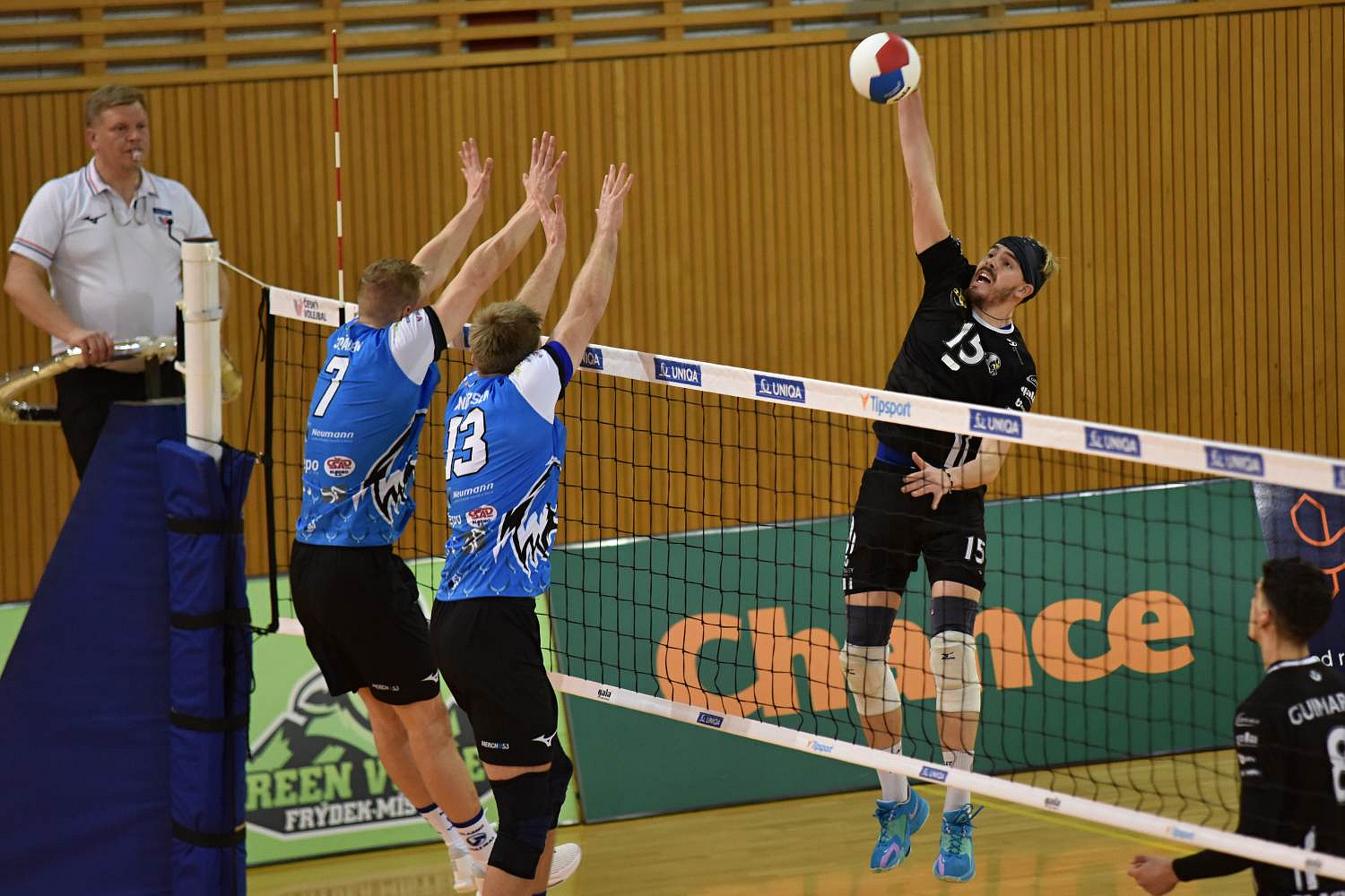 Domácí: Jakub Veselý, Lukáš Ticháček, Lukas Demar, Kruno Nikačević, Filip Gavenda, Nivaldo Diáz Gómez, libera Silver Maar, Marcel Lux. Střídal: Jan Pavlíček