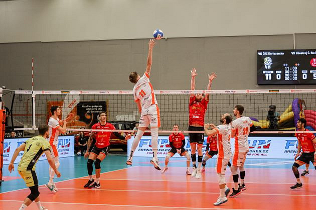 Třetí semifinálový zápas Volejbalové ČEZ extraligy mužů 2024/25 mezi Karlovarskem a Českými Budějovicemi měl dva sety napínavý průběh. V polovině třetího setu měl sice více ze hry hostující Jihostroj, pak však neodolal náporu domácích, úplně vypadl ze hry a Karlovarsko si už vcelku snadno dokráčelo pro důležitý druhý bod v semifinálové sérii.