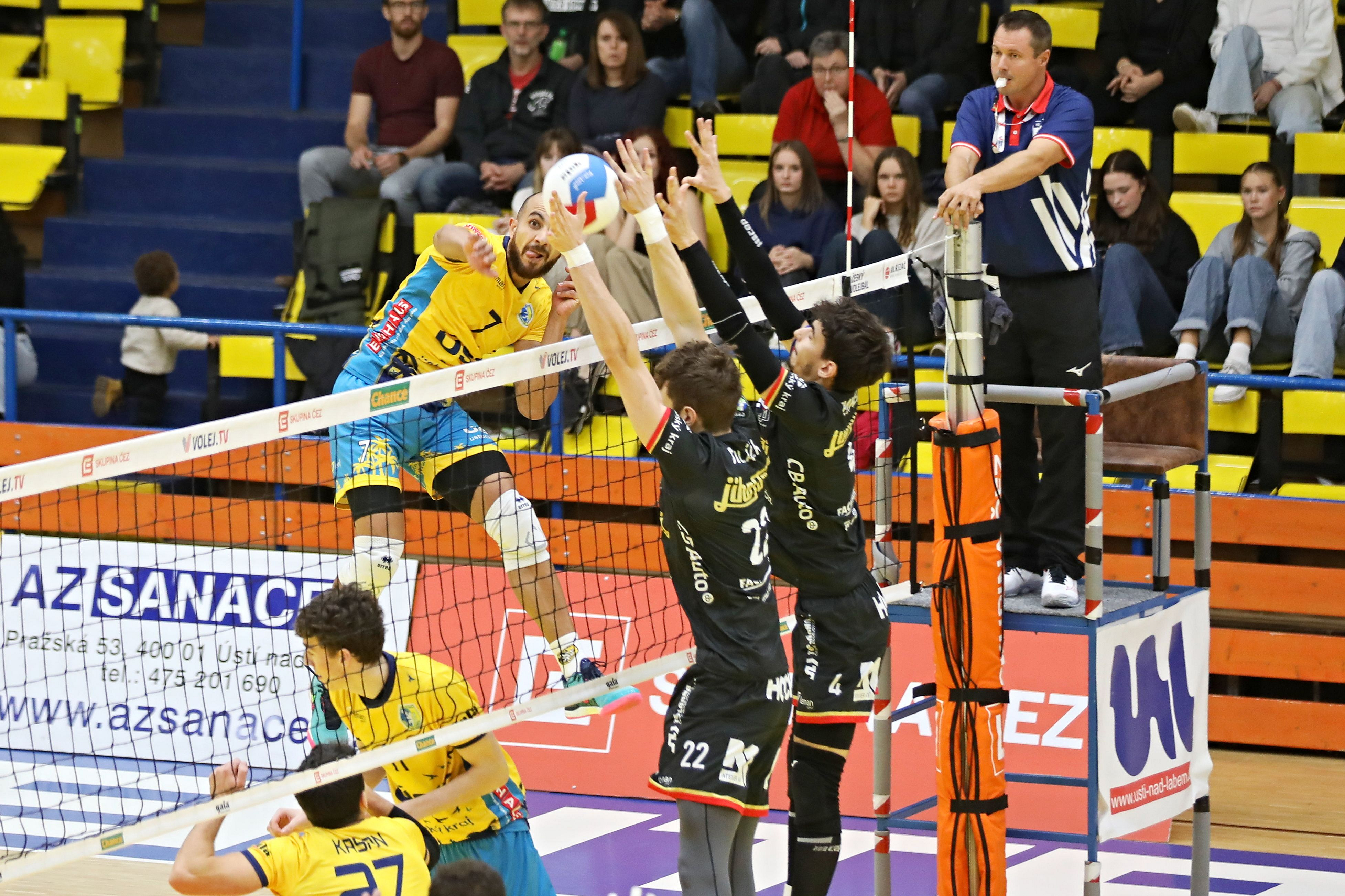 Domácí: Patočka, Hoang, Dimitrov, Dvořák, Hladík, Heiskanen, libero Pineau. Střídali: Goč, Jachnicki, Démar, Kalsi