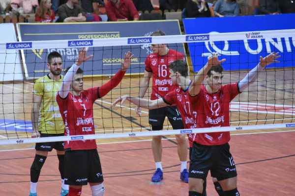 Domácí: Mikula, Walsh, Hladík, Vanags, Russell, Viiber, libero Hadrava. Střídali: Vachoušek, Holčík, Gear