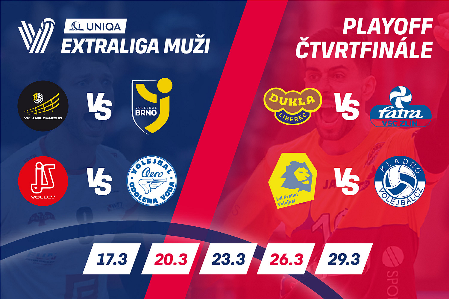 VK ČEZ Karlovarsko – SKV Ústí nad Labem 3:0 (25:17, 25:13, 25:14) první utkání 3:0 - do semifinále postupuje Karlovarsko