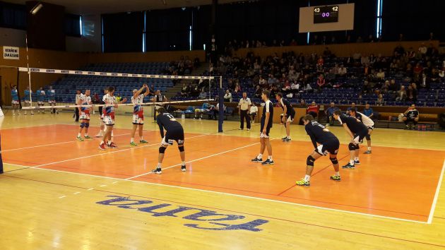 Začátek utkání byl vyrovnaný a s minimem chyb na obou stranách. Oba celky dobře podávaly ( Voth, Rejle, Ropret), útočily (Kramár, Zmrhal) a přetahovaly se o jednobodové vedení až do koncovky. Tu lépe zvládli hosté zásluhou kvalitního bloku (Zmrhal).