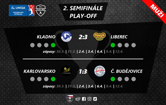 Druhými zápasy semifinálové série dnes pokračovala mužská UNIQA extraliga. Po čtvrtečních soubojích, kdy zvítězily po základní části lépe postavené týmy, se dnes série srovnaly, uspěl totiž jak Liberec, tak českobudějovický Jihostroj. Semifinále pokračuje v neděli třetími duely.
