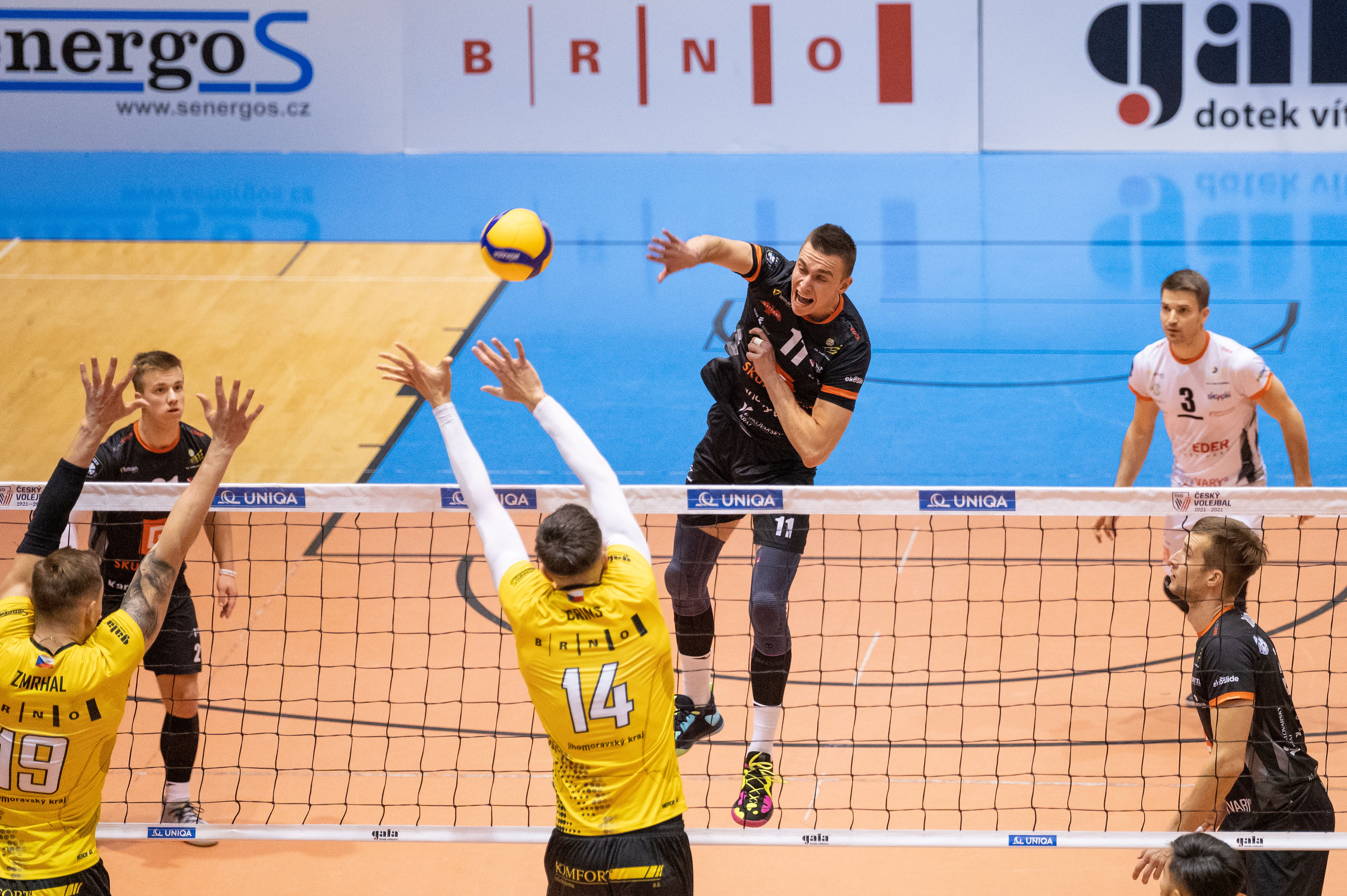 Domácí: Prokůpek, Motyčka, Muroň, Provazník, Koloušek, McLain, libero Jelen. Střídal: Mišek