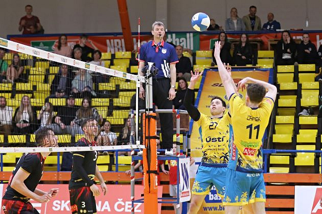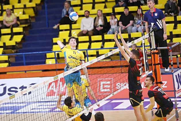 První zápas v baráži byl poměrně rychlý a domácí volejbalisté Ústí nad Labem potvrdili roli favorita a vyhráli 3:0.