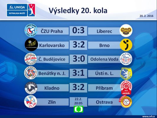 Ve 20. Kole se utkali sousedé v tabulce. Na palubovku Karlovarska zamířil celek Brna. První vzájemné utkání vyhrálo Brno 3:2. Utkání bylo důležité z pohledu nasazení do play-off. Zápas nabídl hezký bojovný volejbal a skvělou diváckou kulisu.