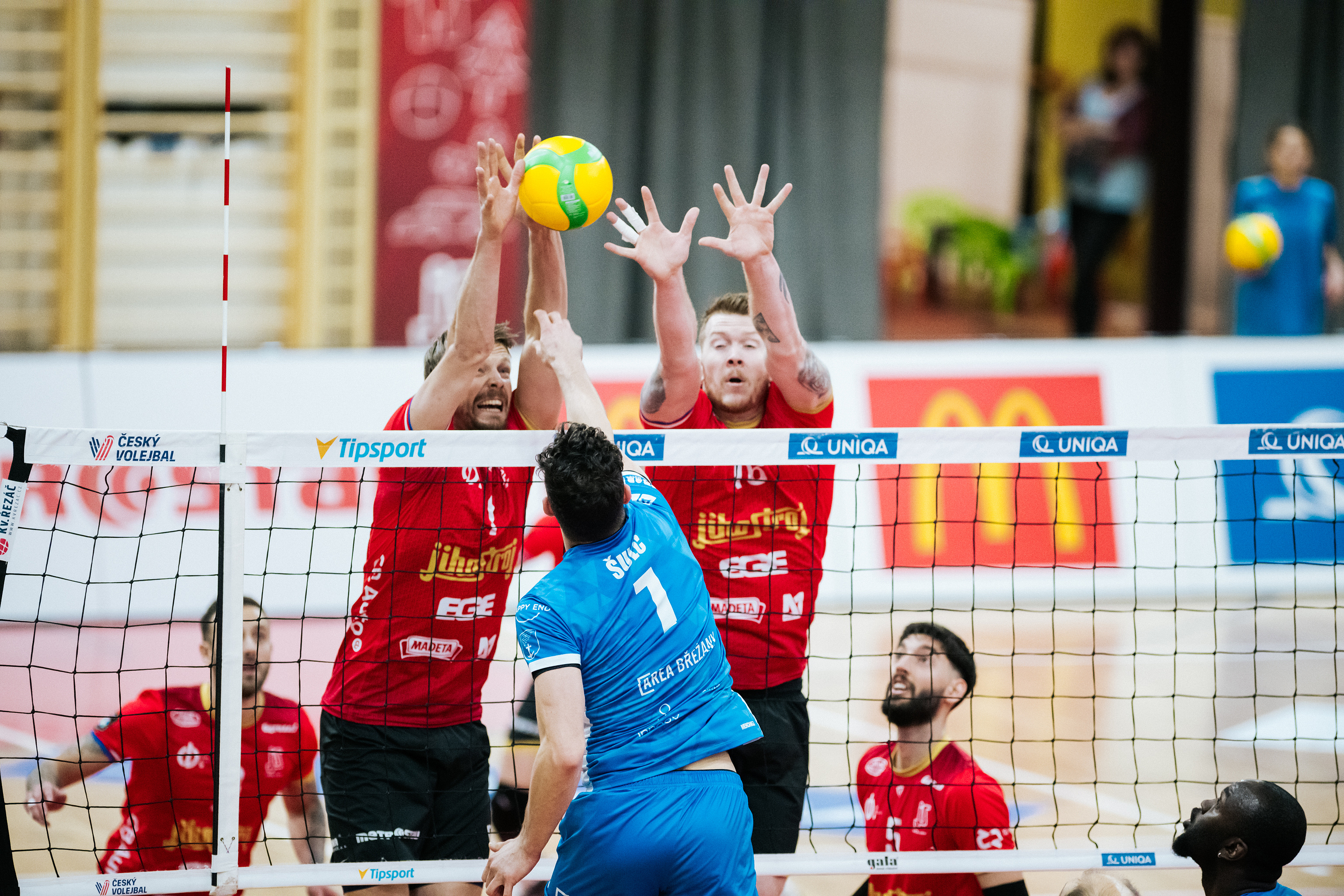 Hosté: Olsen, Pawlun, Mazoch, Dvořák, Tsmokalo, Jarosinski, libero Motyčka. Střídali: Pelikán, Vancl, Resl, Srovnal