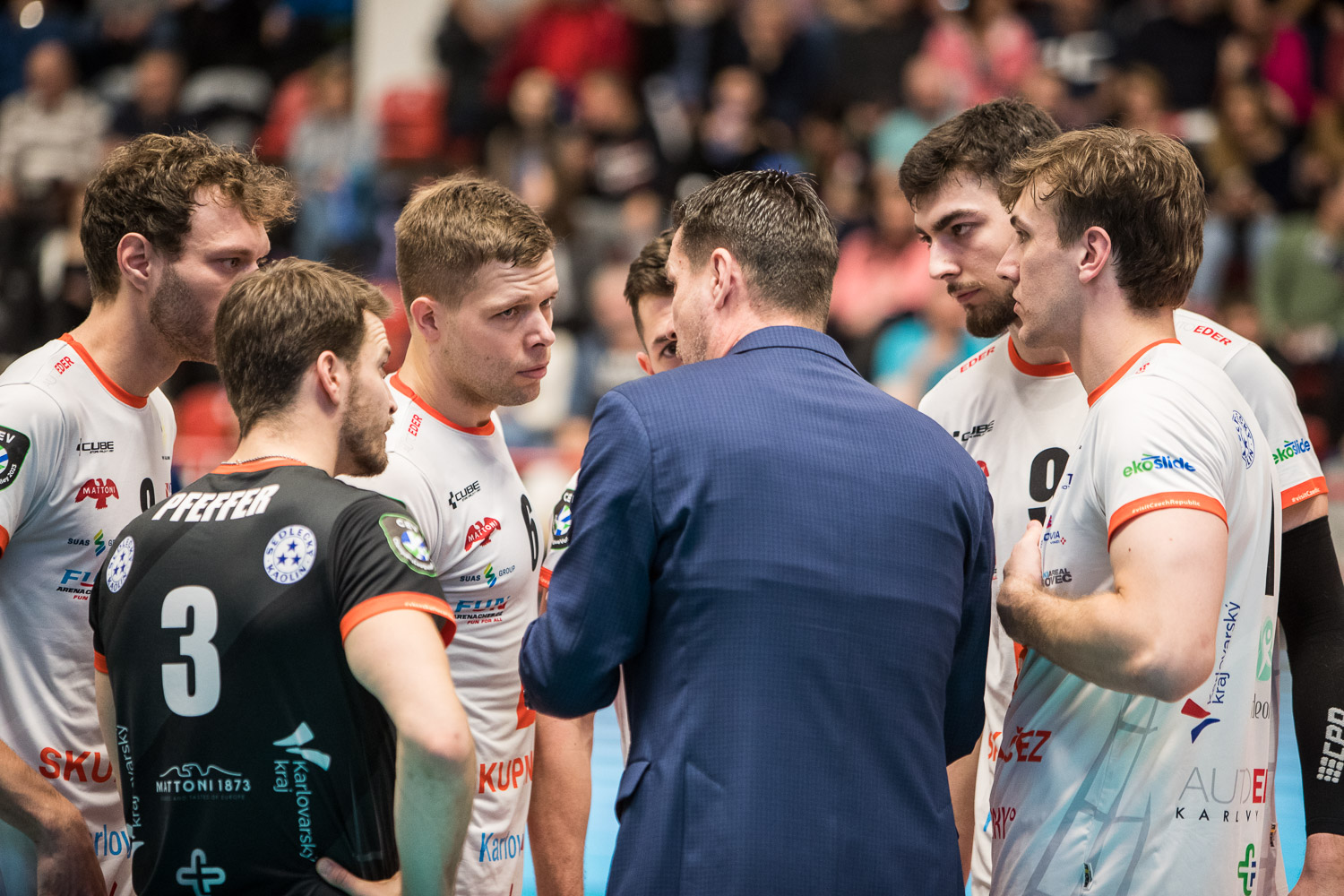 Tým Karlovarska nejprve podlehl Lvům po strhující bitvě před vlastními diváky 15:17 v páté sadě. O tři dny později prohrál v Praze ve třech vyrovnaných setech. „Oni byli zatím vždycky o něco lepší, procenta jsou na jejich straně, my můžeme vyhrát třikrát, jim stačí jednou,“ konstatoval kouč Novák a smečař Juhkami dodal. „Musíme ukázat svůj charakter a sílu, je jasné, že když nepřinutíme soupeře hrát naši hru, bude tlačit on nás.“