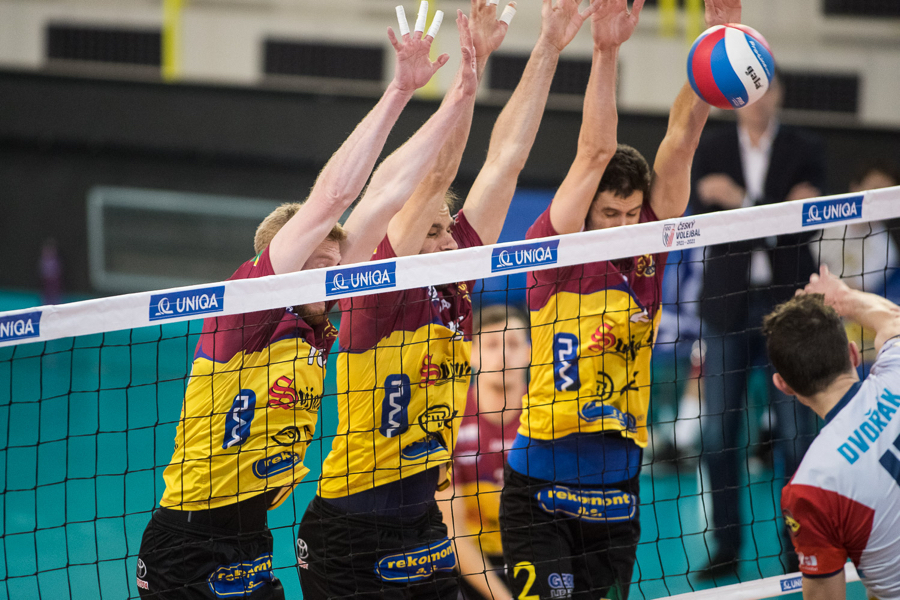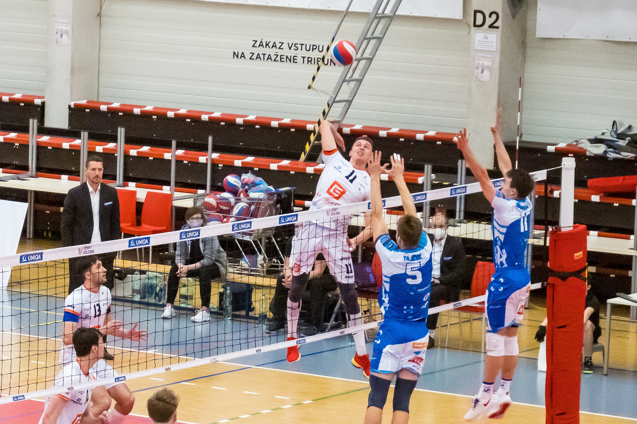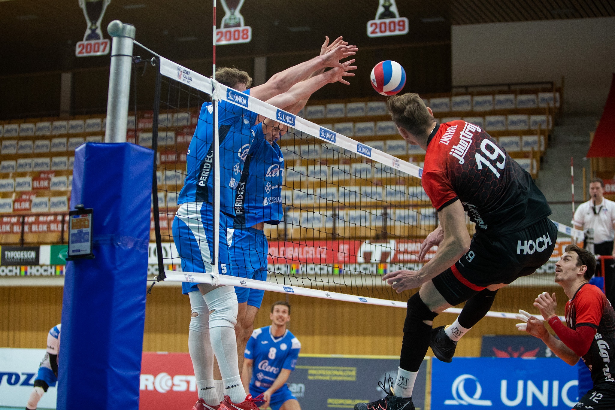 Domácí: Janouch, Smith, Charvát, Mihajlović, Paták, Špulák, libero Ježek. Střídali: Pliasetskyi, Vodička