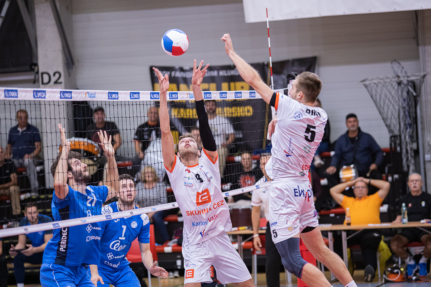 Domácí: Motyčka, Olmedo, Provazník, Benda, Guimaraes, Perry, libera Jelen, Struška. Střídali: Koloušek, Malík, Mišek, Komorowski, Danylov