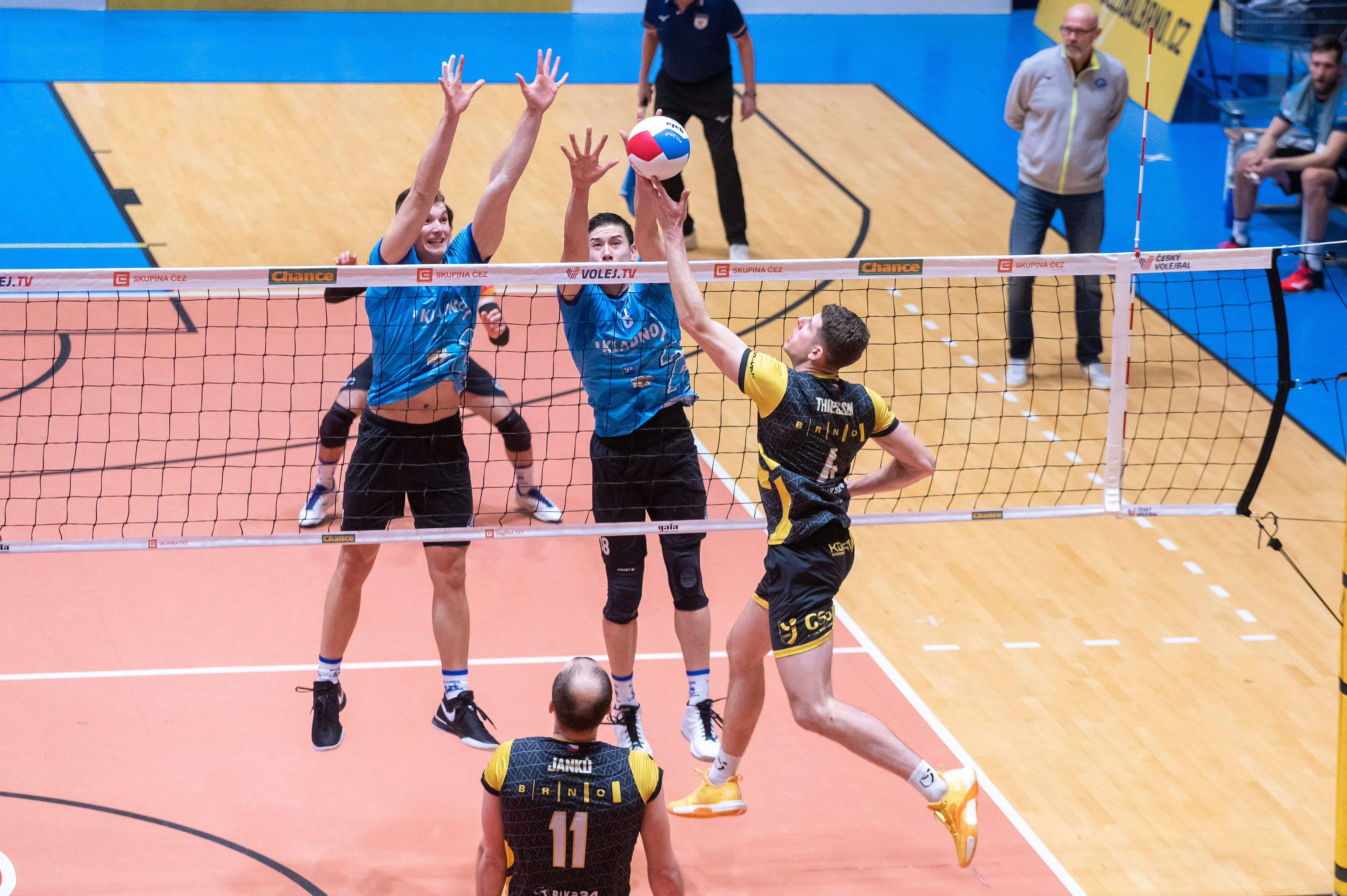 Domácí: Ivan Pliasteskyi, Matouš Lank, Navreet Singh Suhan, Ivo Hulpach, Tomáš Hýský, Ronald Martinez, libero Jiří Kořínek. Střídal: Martin Fišer