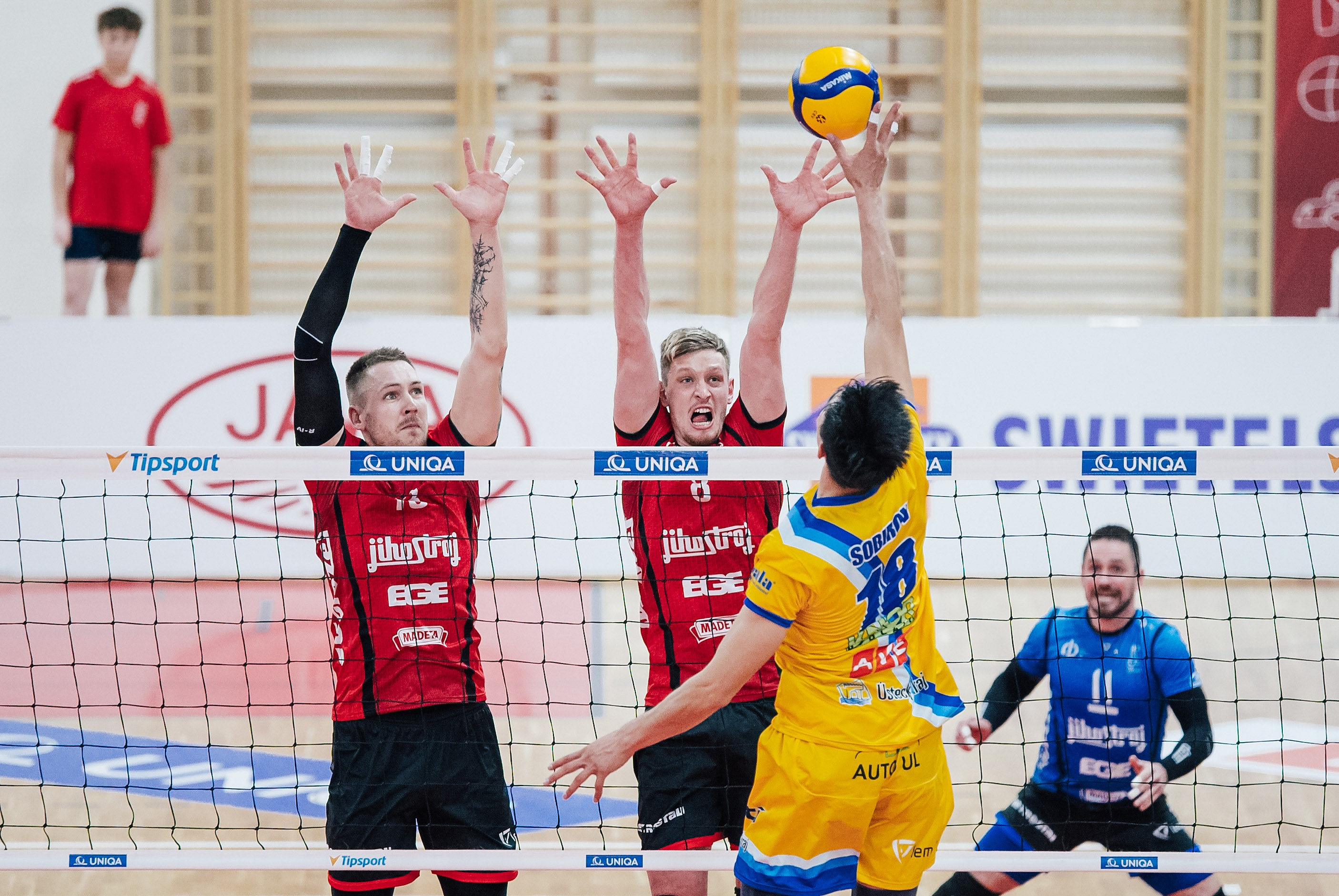 Domácí: Giraudo, Licek, Ondrovič, Kriško, Michálek, Polák, libero Kryštof. Střídali: Stoilovič, van Schie