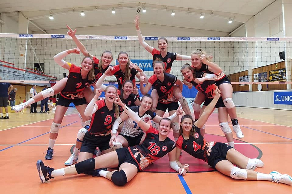 Hosté: Dominika Ramajová, Lucia Herdová, Adriani Kamidinová, Nikola Látalová, Zuzana Látalová, Katarina Körmendyová, libero Tereza Slavíková. Střídaly: Bára Abendroth, Amálie Vyjídáková, Eliška Kořínková