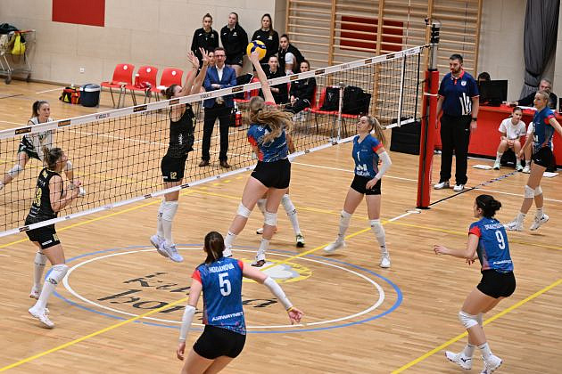 Domácí: Nováková, Širůčková, Šmídová, Silva, Marková, Furdová, libero Koukalová.