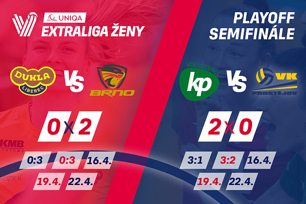 Šelmy po překvapivě jednoznačné výhře v Liberci, doma první dva sety děvčata z Dukly deklasovaly. Až třetí set byl vyrovnaný a dostal se do koncovky, ale zkušené brněnské hráčky pod dirigentskou taktovkou dvou bývalých skvělých reprezentantek Šmídové a Havlíčkové si už druhé vítězství nenechaly vzít a v neděli pod Ještědem mohou potvrdit svůj postup do finále.