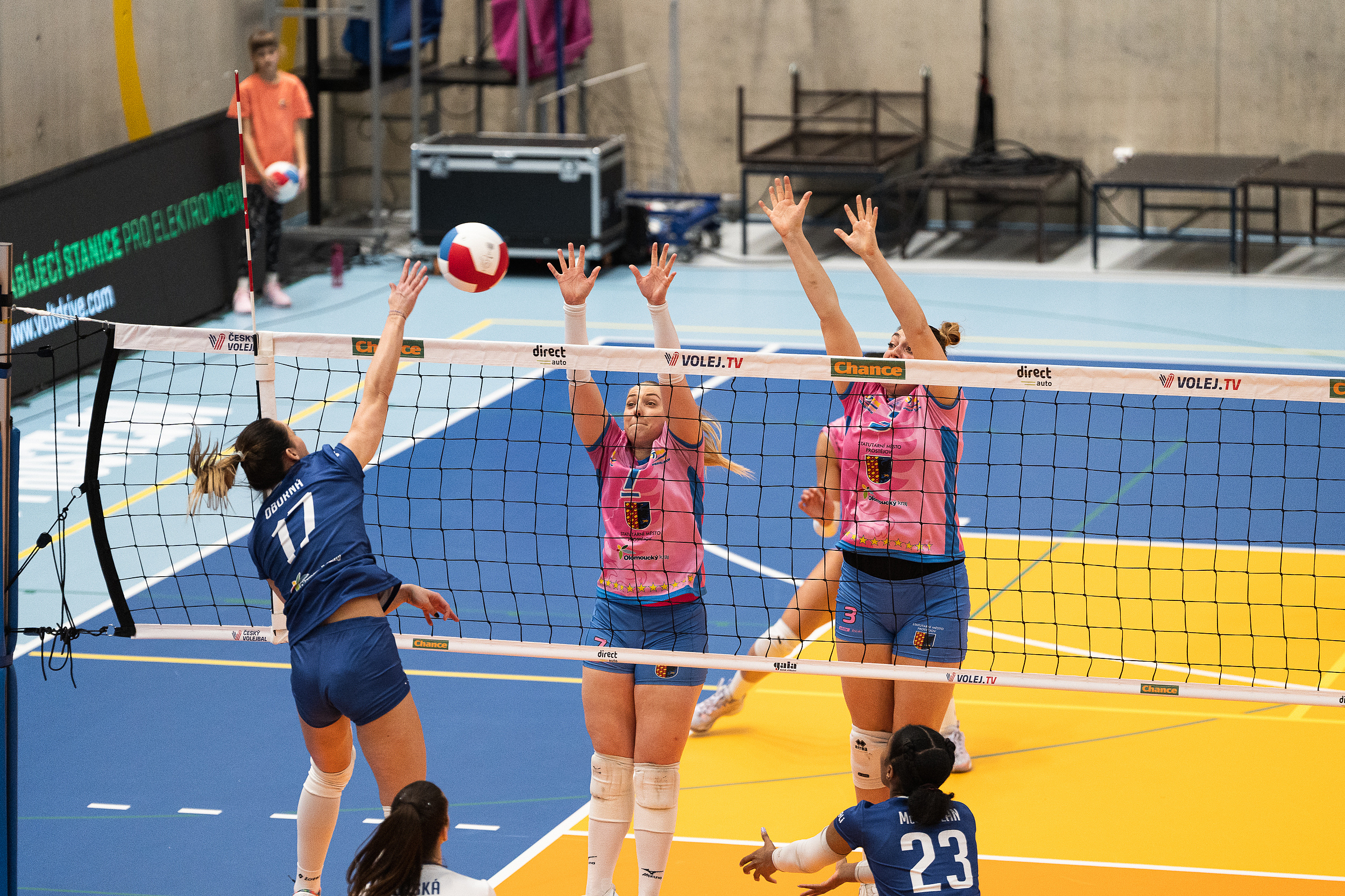 Domácí: Lucia Herdová, Kateřina Kvapilová, Jana Fixová, Diana Frankevych, Thamiere Silva de Mello, Taira Ke Alohilani Robins-Hardy, libero Lucie Kolářová. Střídaly: Anna Pragerová, Klára Vyklická, Caroline Formánková