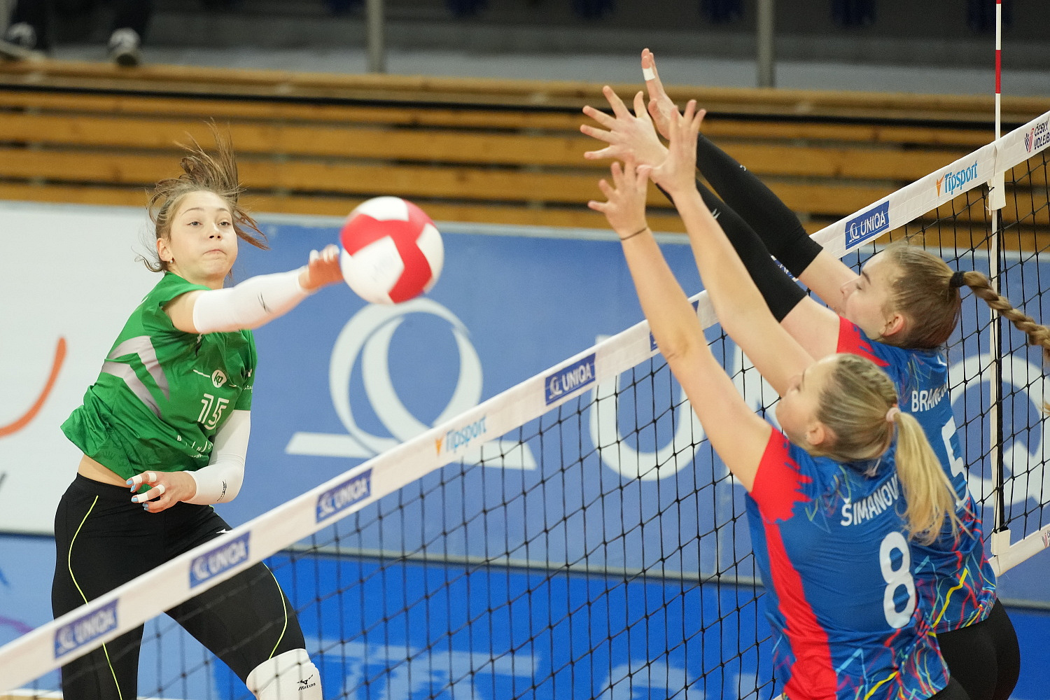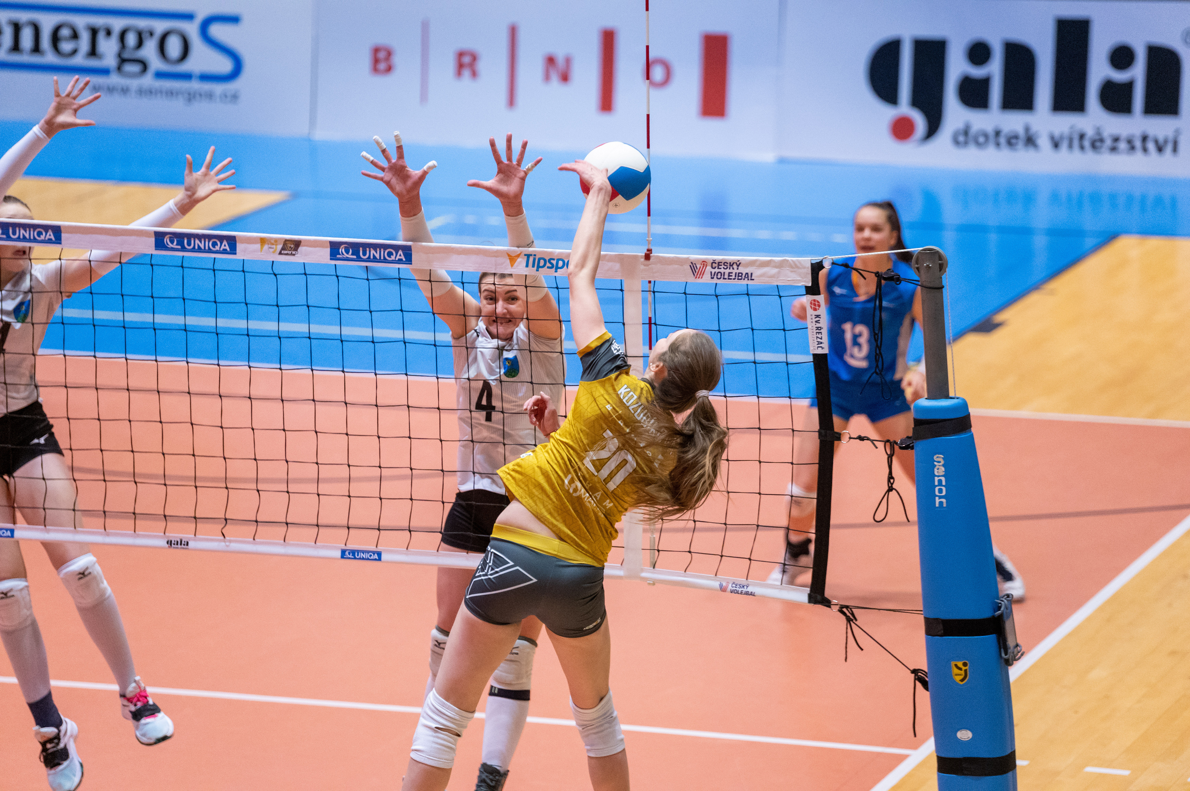Domácí: Kuníková, Hrušecká, Moreno Borrero, Bukovská, Stojkovic, Nikolova, libero Digrinová. Střídaly: Pelikánová, Koulisiani, Kamasová, Rožnovjáková