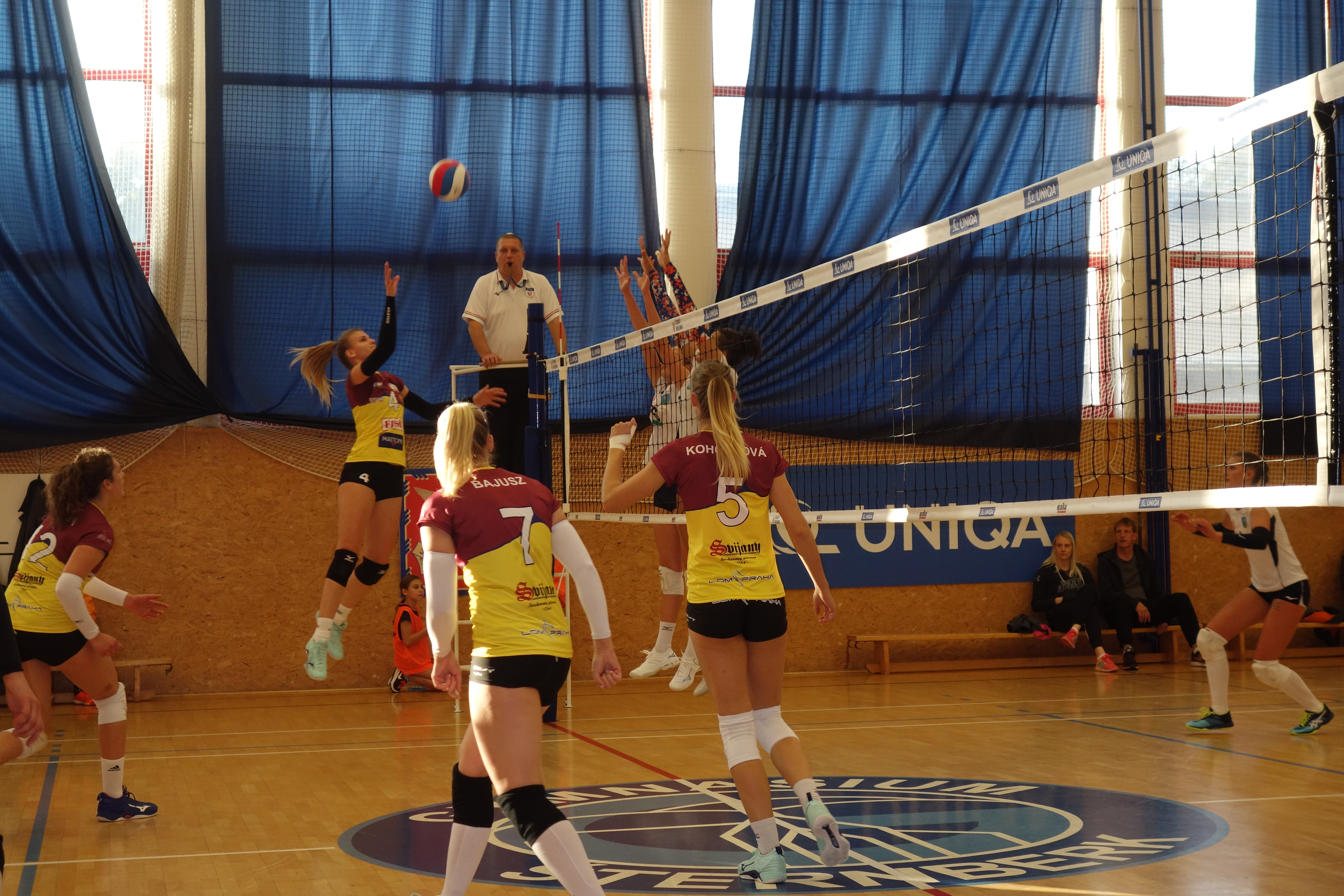 Zřejmě nervozita z premiéry na vlastním hřišti svázala v úvodu domácí hráčky. Nevynuceně chybovaly ve všech činnostech a mnohem klidnější i jistější soupeřky pohodlně utekly na 3:10, posléze 6:13. Za tohoto stavu však vékáčku hodně pomohlo výborné podání Nové, při němž se chytil celý tým útočně tažený Kopáčovou. Bleskově tak bylo vyrovnáno 14:14, později dokonce otočeno na 18:17. Favoritky vypadly z rytmu, špatně přihrávaly a skvěle servírující + celkově makající hostitelky nečekaně dominovaly (19:19 – 23:19). Navíc také koncovku zvládly bravurně – 25:20!