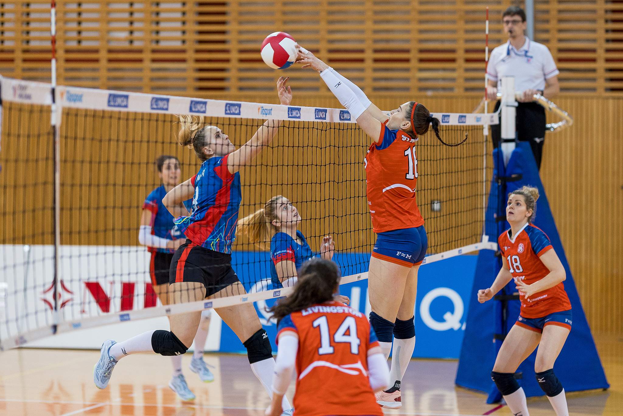Domácí: Herdová, Kneiflová, Rajlić, Borovcová, Körmendyová, Galvão, Mostsitska, libero Slavíková. Střídaly: Šepeĺová,Weidenthalerová