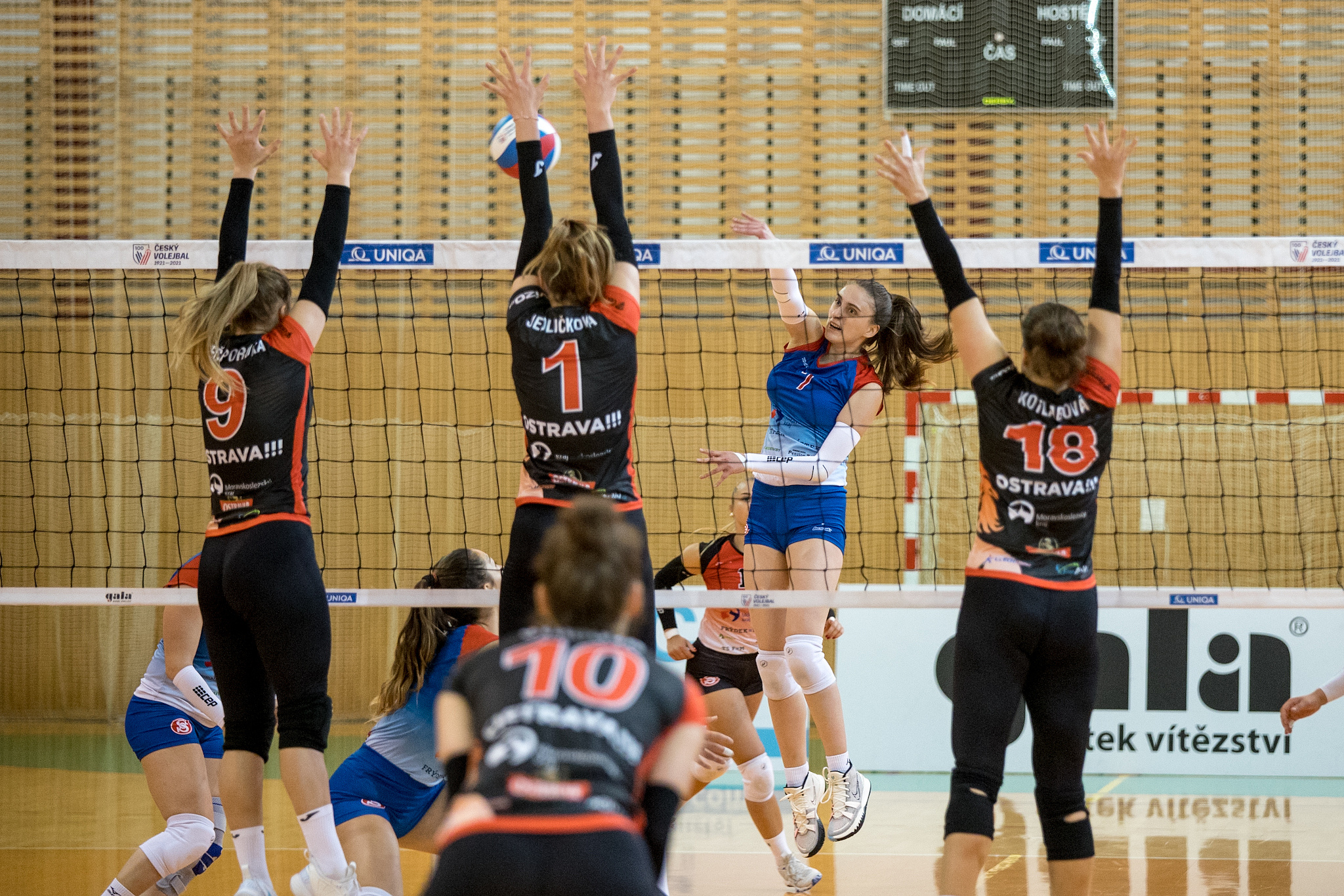 Domácí: Hrušecká, Pelikánová, Bukovská, Judlová, Sweet, Pavlíková, libero Digrinová. Střídaly: Pavlicová, Koulisiani, Moreno Borrero, Veselá, Jelínková