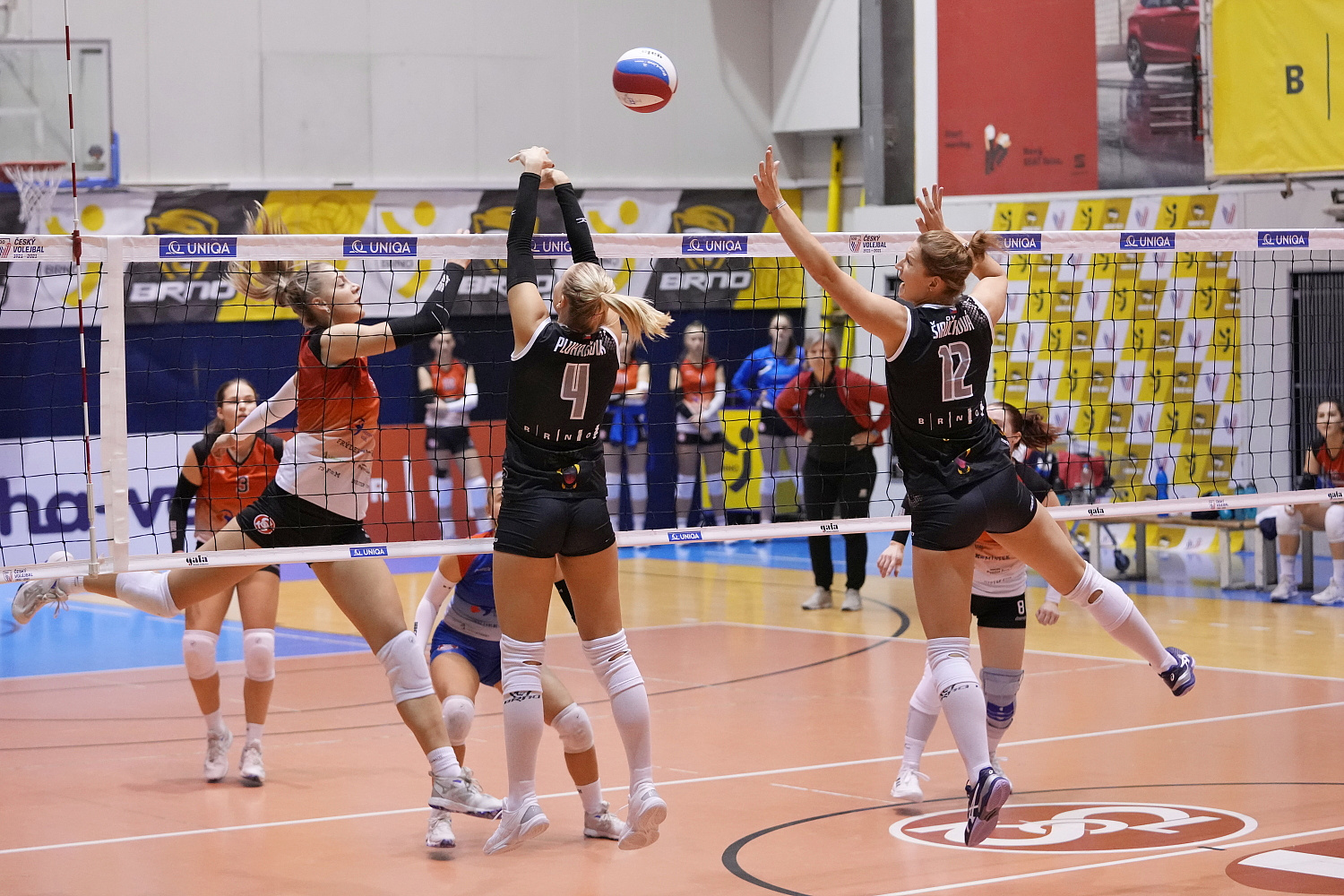Domácí: Látalová Z., Körmendyová, Ramajová, Herdová, Kamidinová, Látalová N., libero Slavíková. Střídala: Kořínková