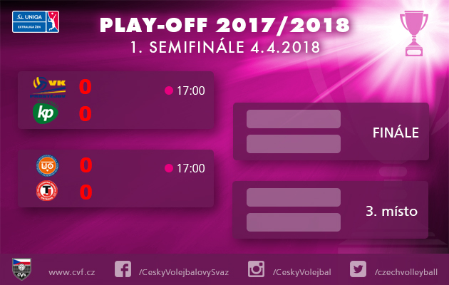 Ve středu startují první zápasy play-off semifinálové série UNIQA volejbalové extraligy žen 2017/18. Složení dvojic je stejné jako v semifinále minulého ligového ročníku. Prostějov přivítá na své palubovce hráčky Brna a Olomouc se představí domácím divákům v zápase s Ostravou.