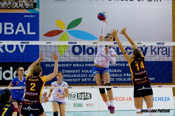 Domácí: Nachmilnerová, Valková, Makauskaite, Zemanová, Diatková, Žolnerčíková, libero Chevalierová. Střídaly: Šípová, Čuboňová, Sedláčková, Kojdová