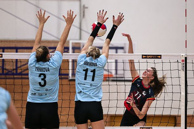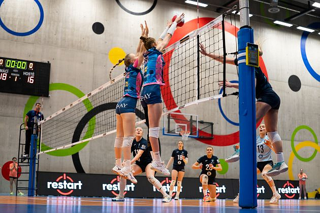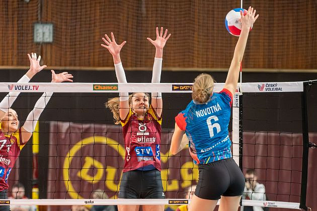 Domácí: Deisl, Dvořáková, Bažó, Madan, Cruz, Makoňová, libero Slavíková. Střídaly: Jasečková, Zapletalová