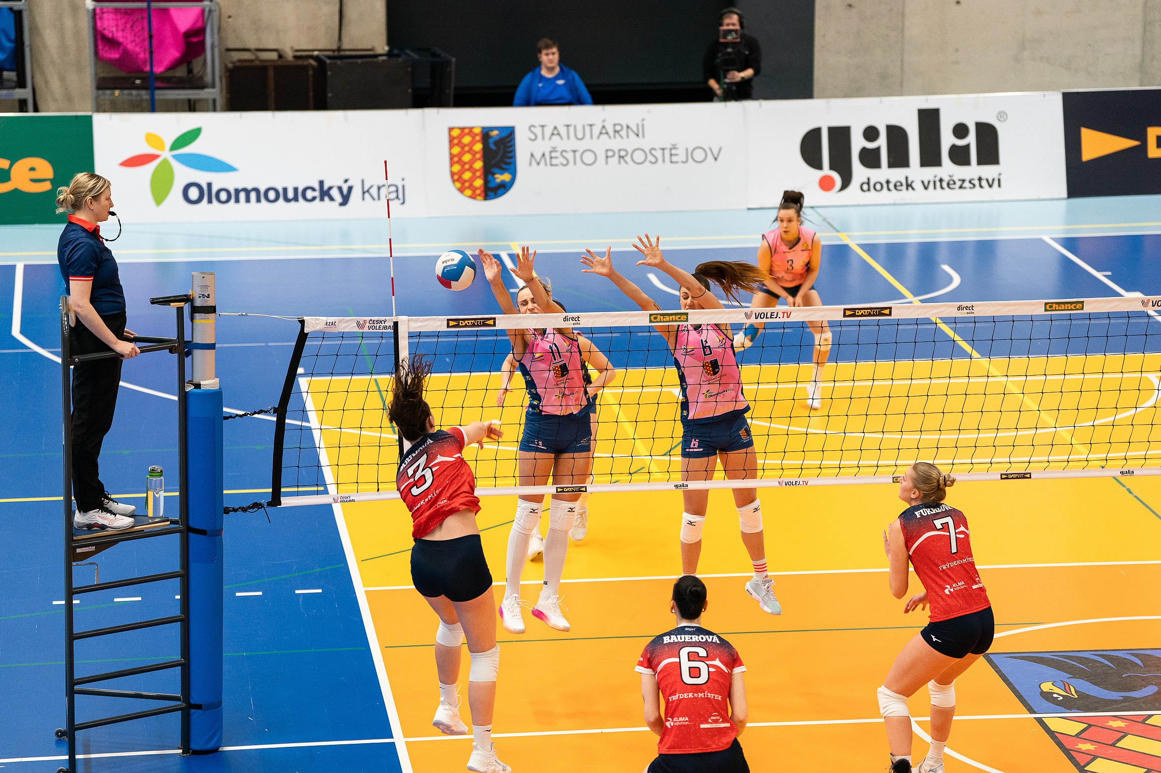 Domácí: V. Pluhařová, Boštíková, Silva, Janská, Maciagowski, Nováková, libera T. Pluhařová, D. Šrámková.