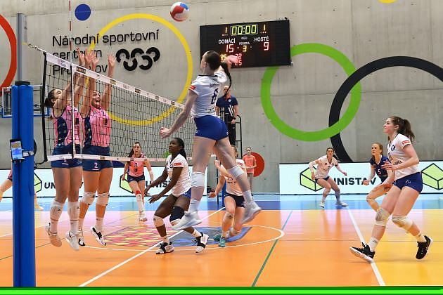 Domácí: Ferreira, Dvořáková, Vyklická, Kvapilová, Herdová, Trnková, libero Chevalierová. Střídaly: Abendroth, Cruz, Bažó