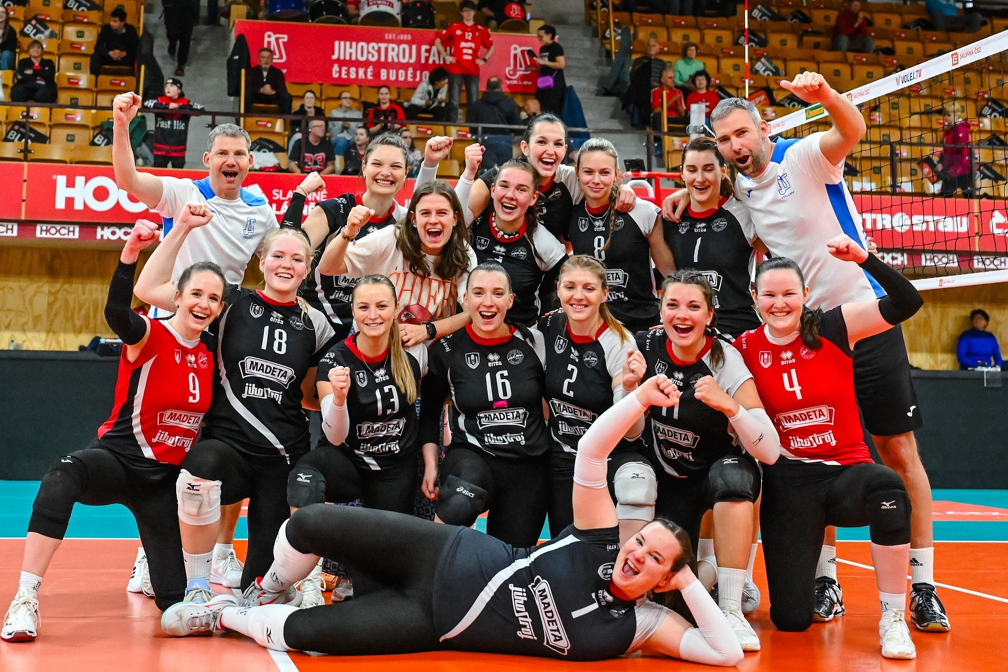Domácí: Harrisová, Šmejkalová, Havlíková, Ungrová, Beránková, Semerádová, libero Drábková. Střídaly: Šimánková, Bambasová, Nová