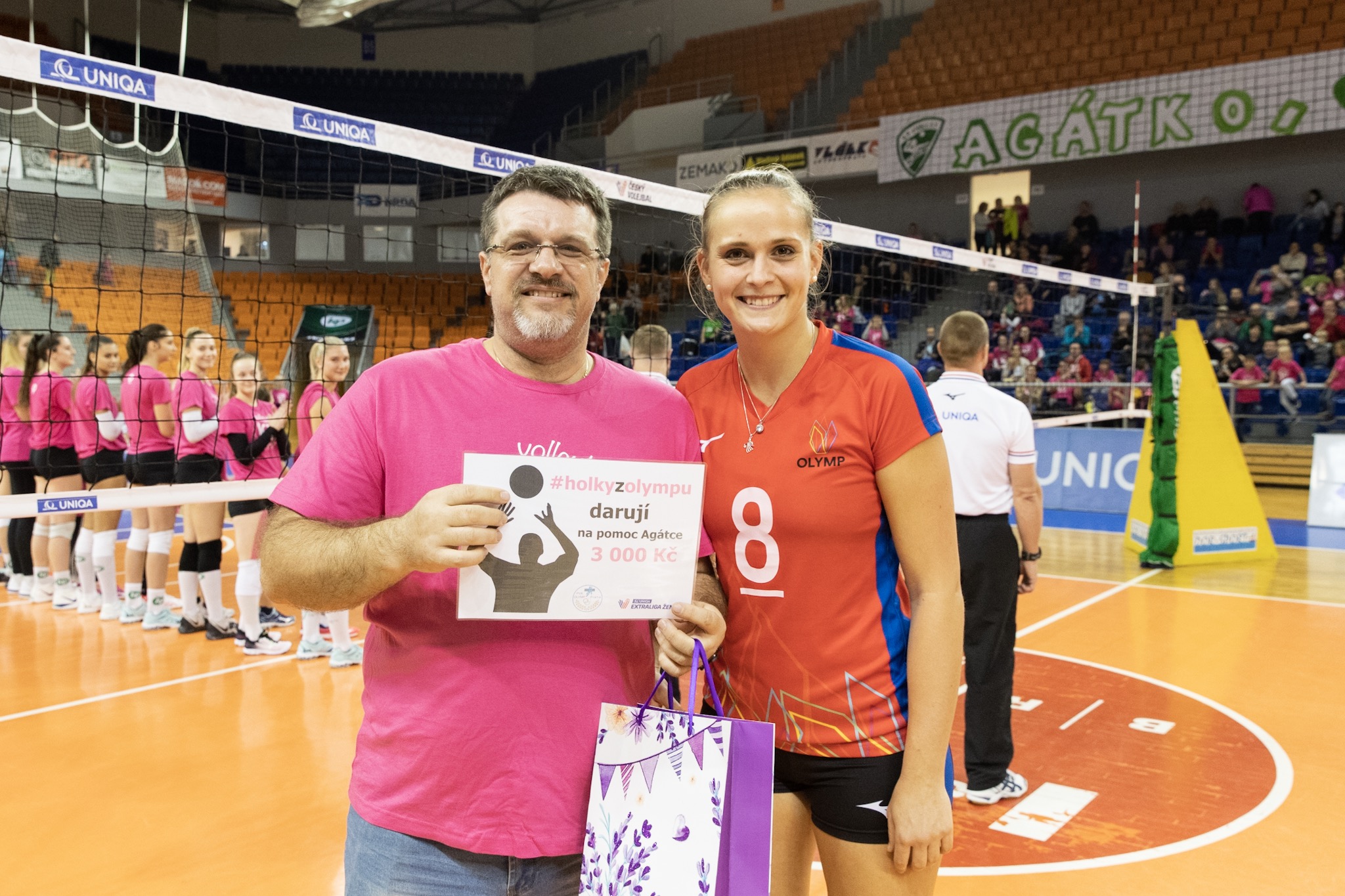 Extraligový duel mezi Královým Polem a Olympem Praha měl charitativní nádech s podtitulem KáPéčko pro Agátku. Halu Vodova zaplnili diváci a děti v růžových tričkách na podporu nemocné hráčky přípravek KP Brna a s pomocí přijel do Brna i Olymp, když rodině Agátky přivezl věcný a finanční dar. Domácí volejbalistky vlétly do zápasu při chuti a za veliké podpory všech diváků, kteří na Vodovu zavítali v opravdu hojném počtu, ovládly zápas bez ztráty setu.