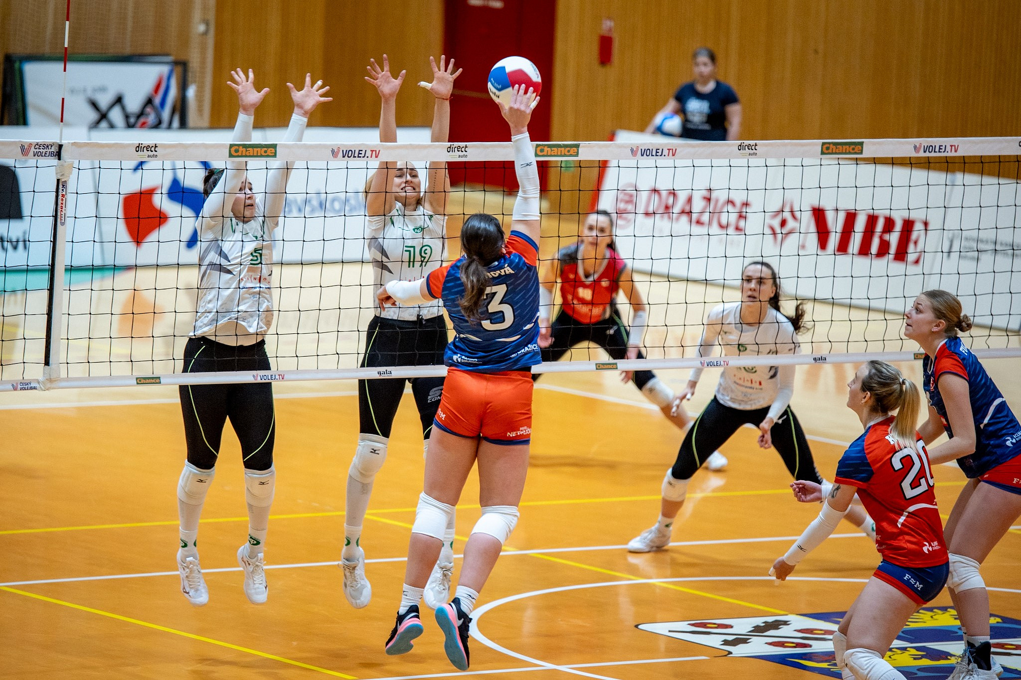 Domácí: Šmídová, Janečková, Marková, Madsen, Kelnárová, Širůčková, libero Chevalierová. Střídaly: Benediktová, Beránková
