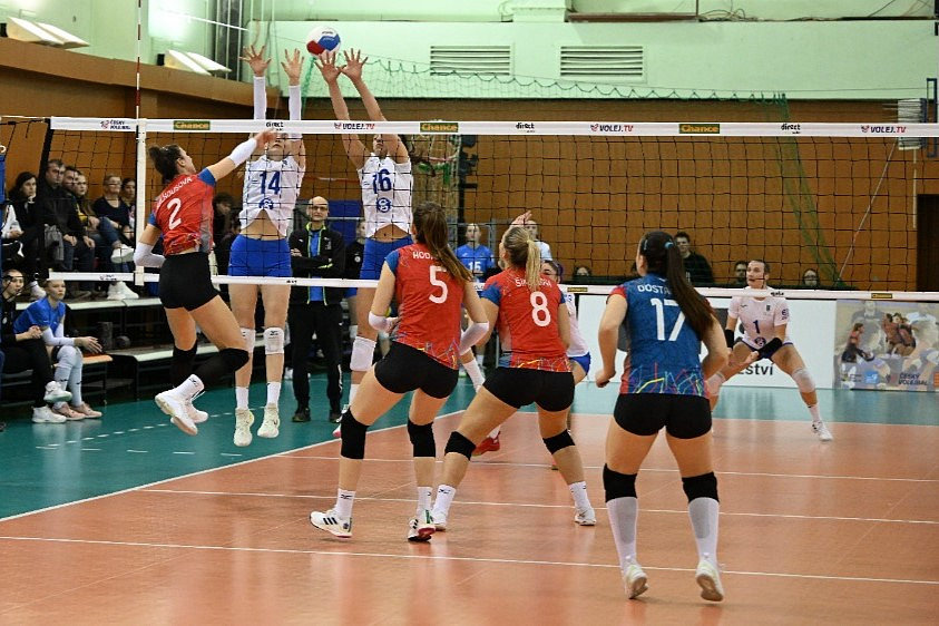 Domácí: Hodanová, Gajdová, Brancuská, Kalhousová, Šimáňová, Šmídová, libera Dostálová, Mitáčová. Střídala: Virtová