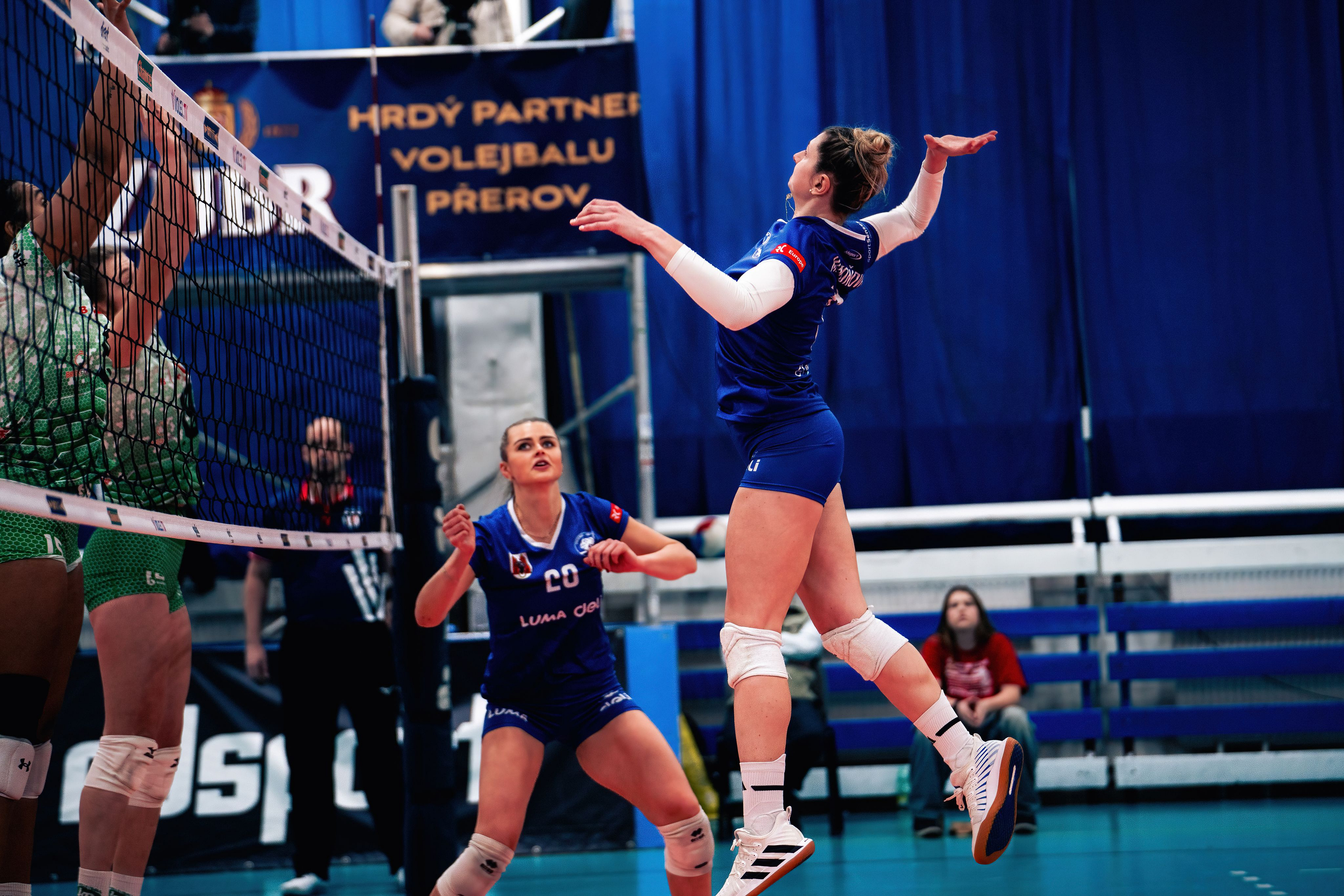 Domácí: Zatloukalová, Šrámková, Warmington, Stefánsdóttir, Ternava, Makoňová, libero Kulová. Střídaly: Hrudíková, Pospíšilová, Mickelson, Hůsková