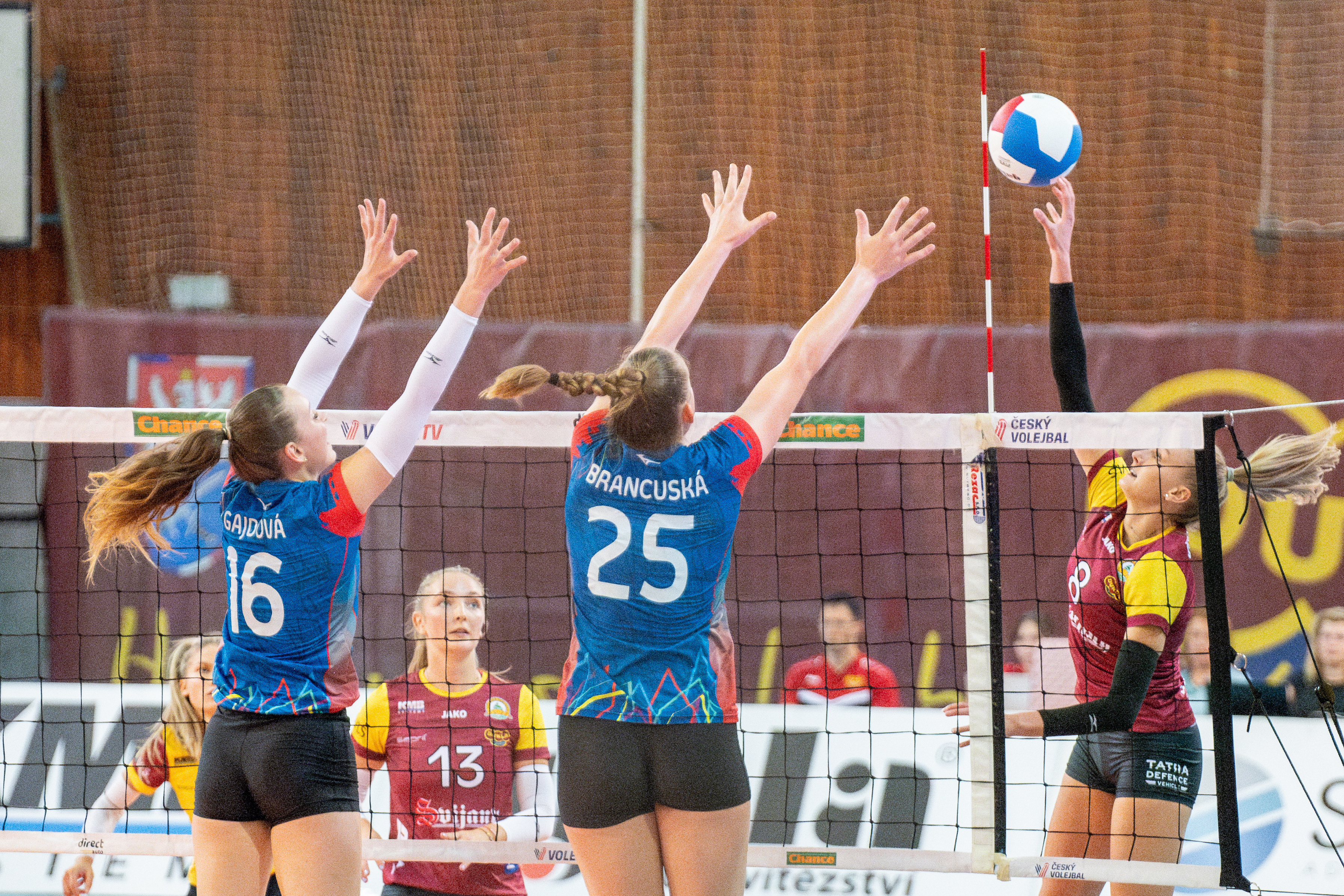 Domácí: Holubcová, Dvořáčková, Laifrová, Kořínková, Látalová, Šotkovská, libero Brink. Střídaly: Valentová, Dovhodshapko