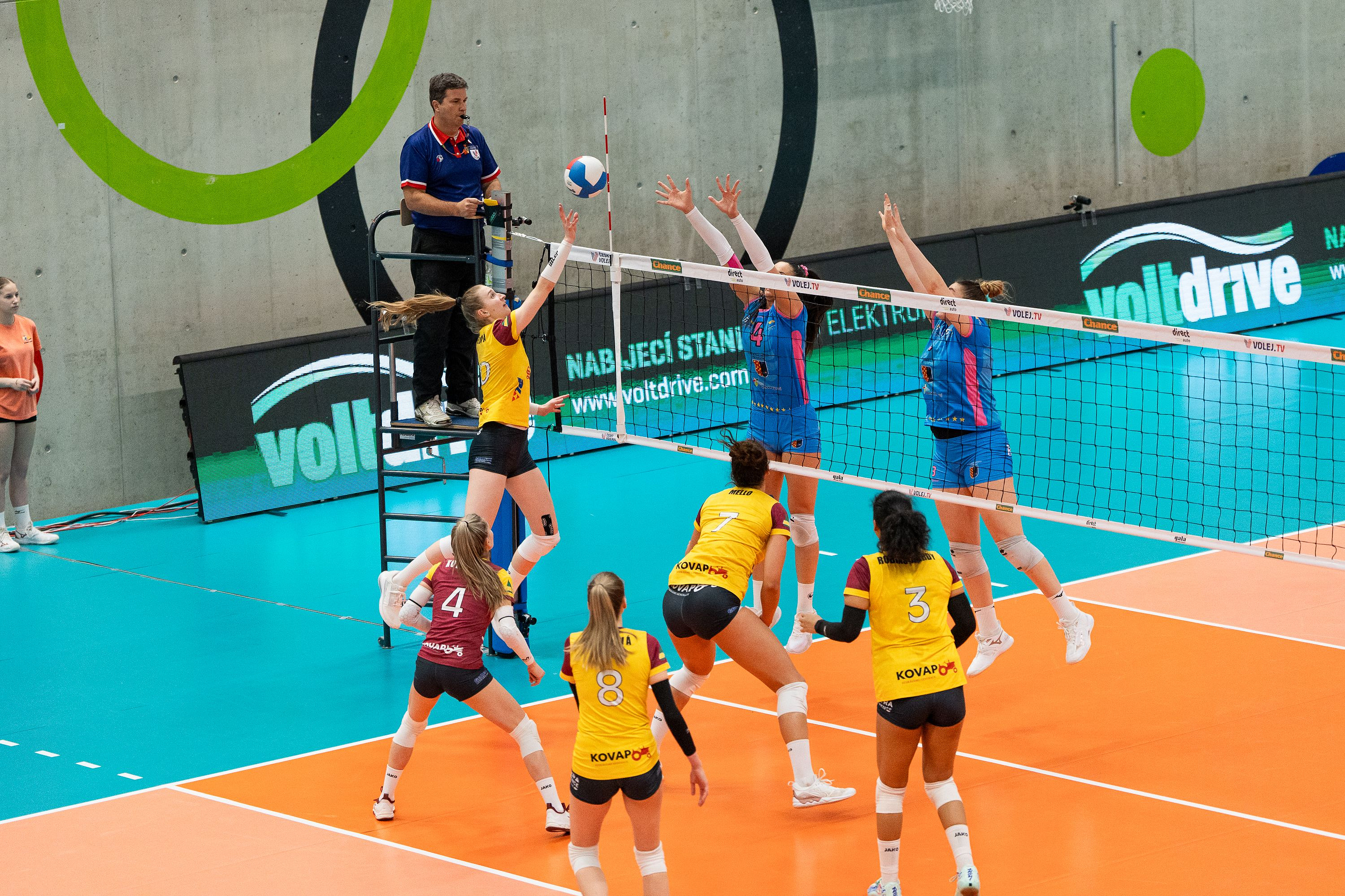 Severočešky okamžitě utekly na 0:3 a vedení pak držely, brzy jej další bodovou šňůrou ještě zvýšily (4:5 - 4:10). Byly lepší ve všech činnostech a tlačily nejen podáním, naopak vékáčko často chybovalo. Zvedlo se až od stavu 5:11, celkovým zkvalitněním výkonu trpělivě ukrajovalo ze svého manka (7:11, 11:13). A když pak skvěle zaservírovala Klára Faltínová, povedlo se otočit z 12:15 na 16:15. Soupeřky si ale hned vzaly vedení zpátky (16:17, 17:20), aby zbytek zahajovacího dějství bezpečně uhlídaly. V součtu měly víc herní jistoty i přesnosti - 19:25.