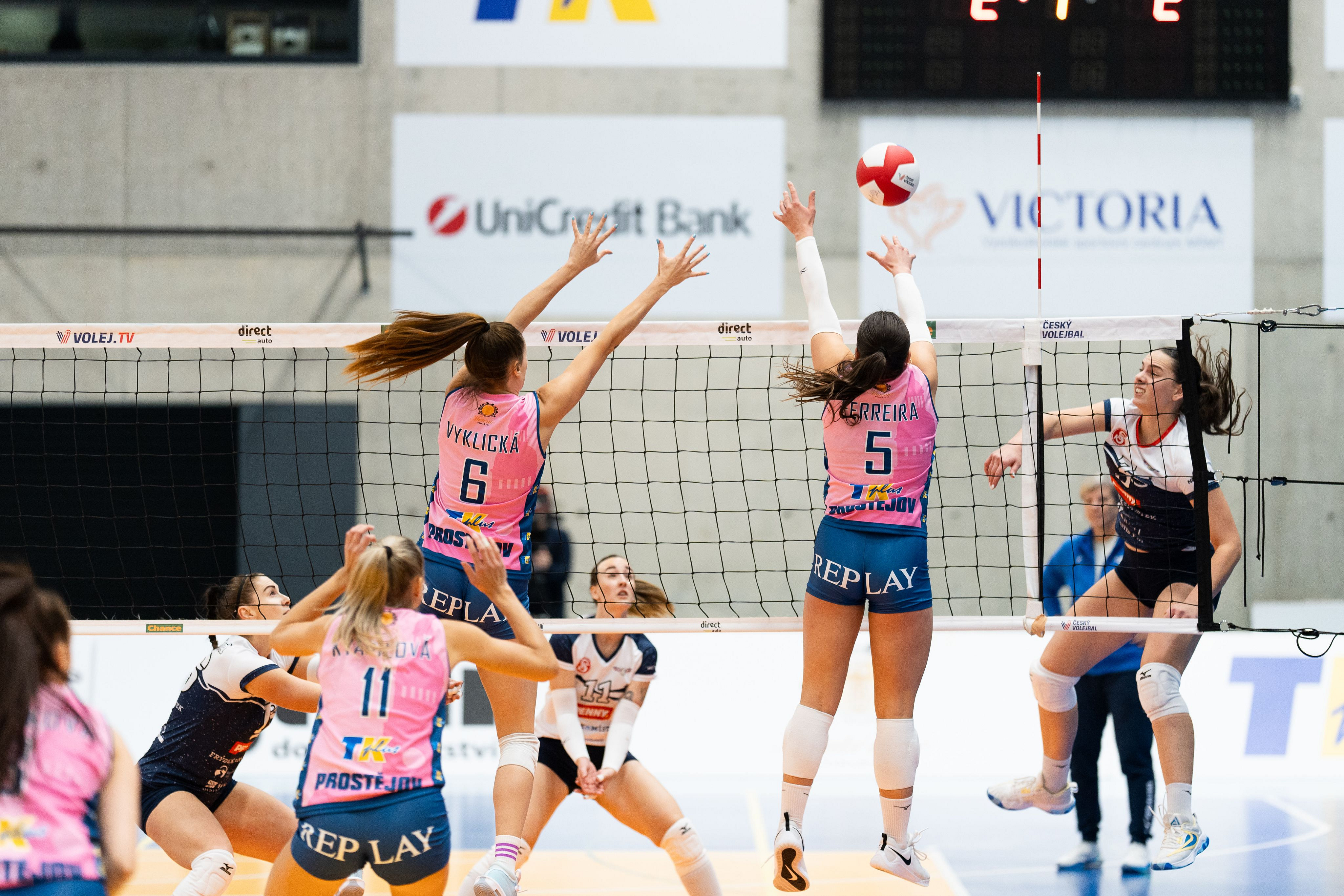 Domácí: Dvořáková, Bažó, Kvapilová, Herdová, Vyklická, Ferreira, libero Chevalierová. Střídaly: Pavlová, Abendroth