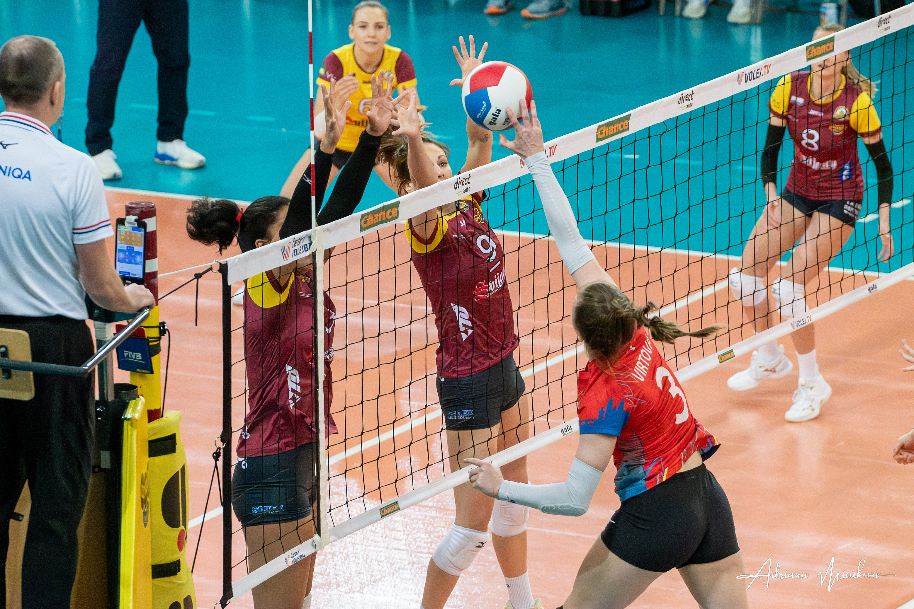 Domácí: Chaloupková, Nowak, Artyshuk, Fedchuk, Nečasová, Šotkovská, libero Ryšavá. Střídala: Přibylová