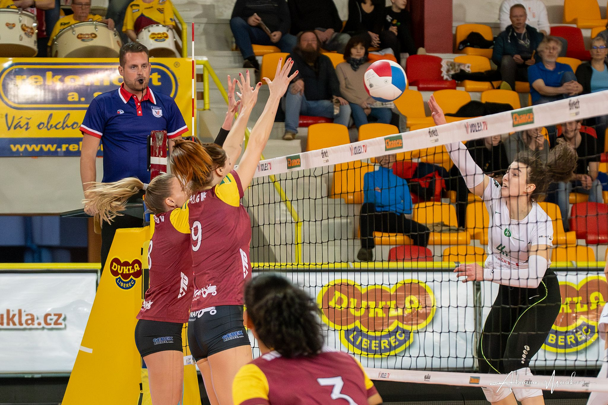 Domácí: Bajusz, J. Smolková, Löff, Tošič, Faltínová, Trnková, libero Meidlová.