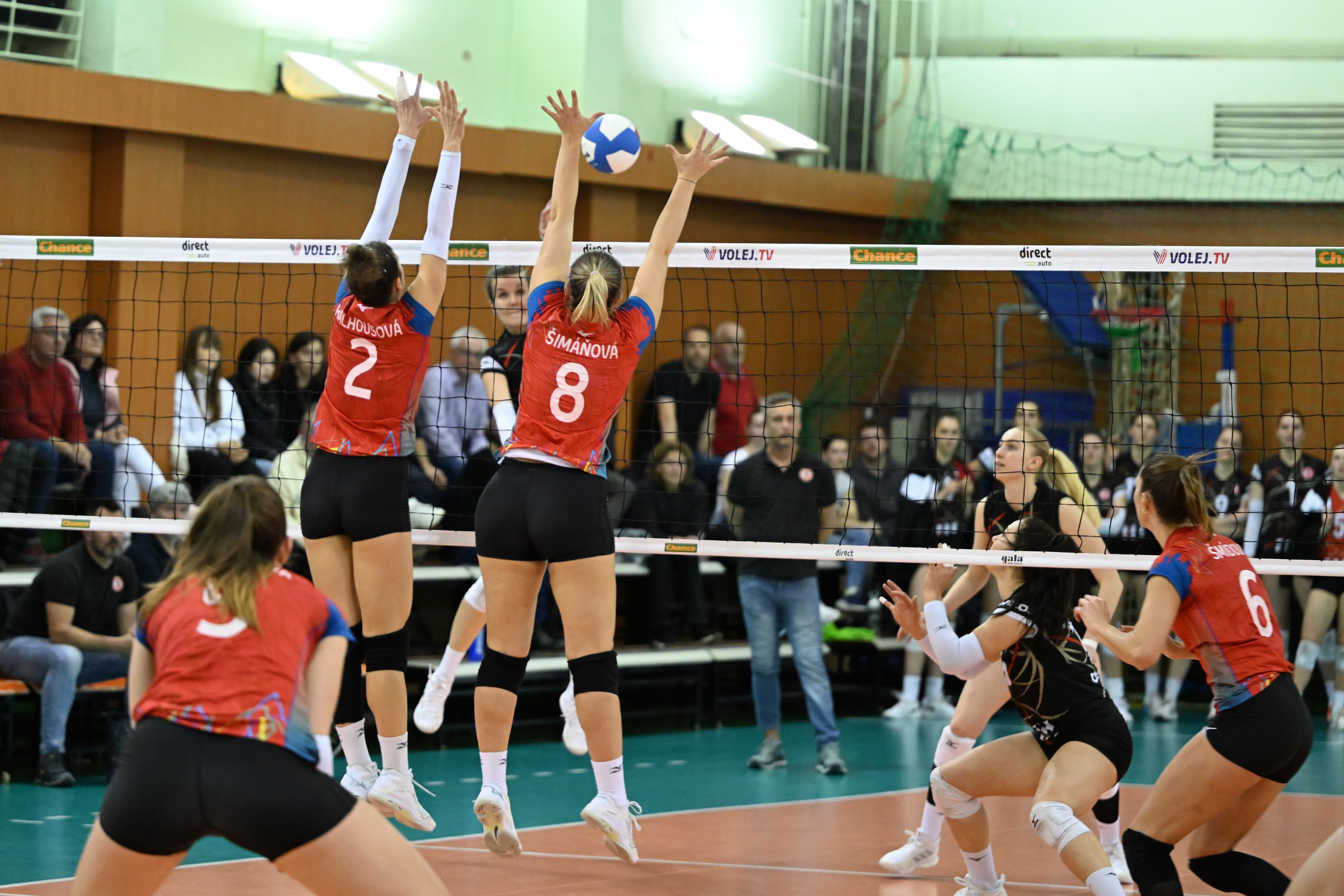 Domácí: Kalhousová, Gajdová, Brancuská, Hodanová, Šmídová, libero Dostálová. Střídaly: Virtová, Žáková