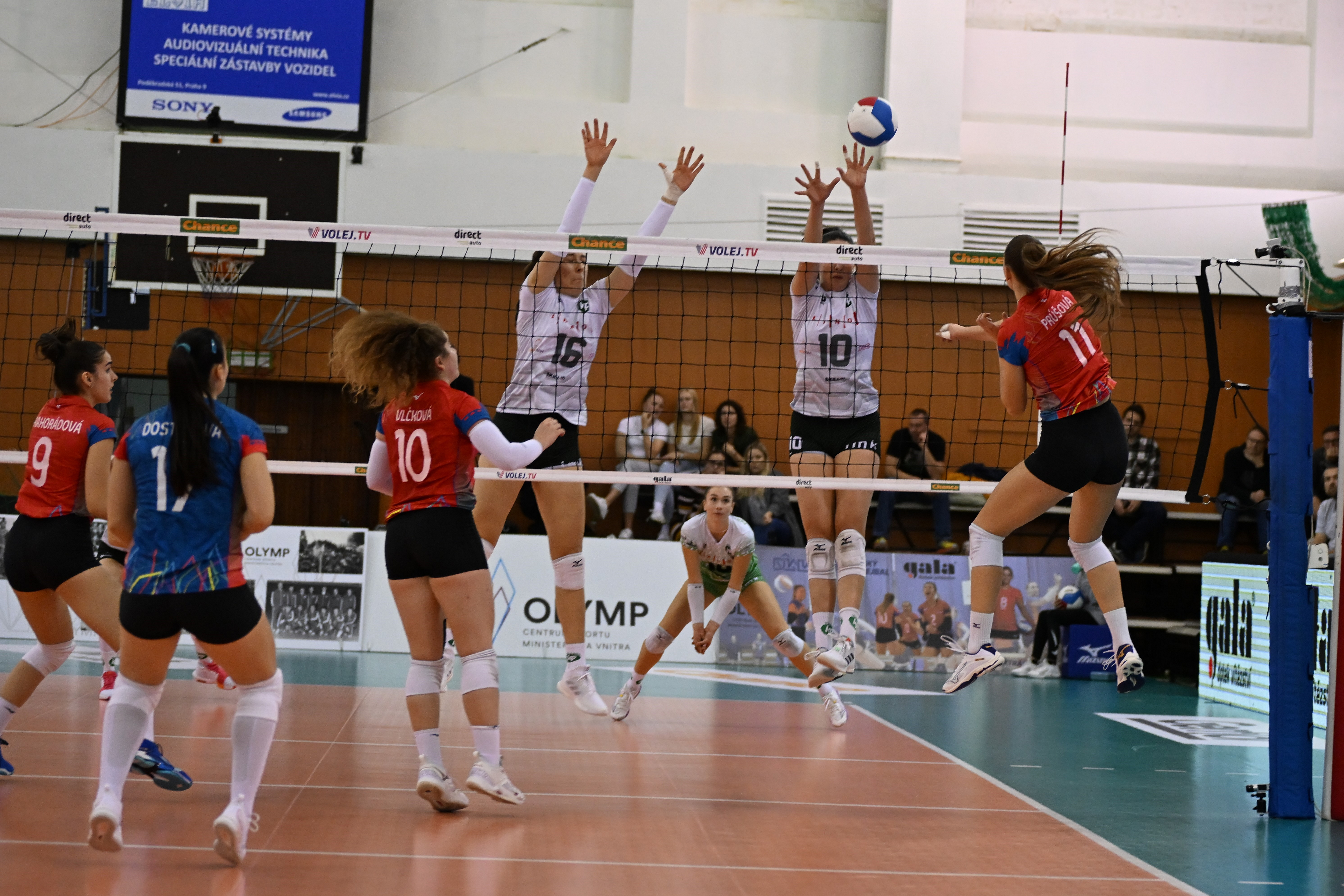 Domácí: Vlčková, Průšová, Žáková, Brancuská, Hodanová, Gajdová, libero Dostálová. Střídala: Drahorádová